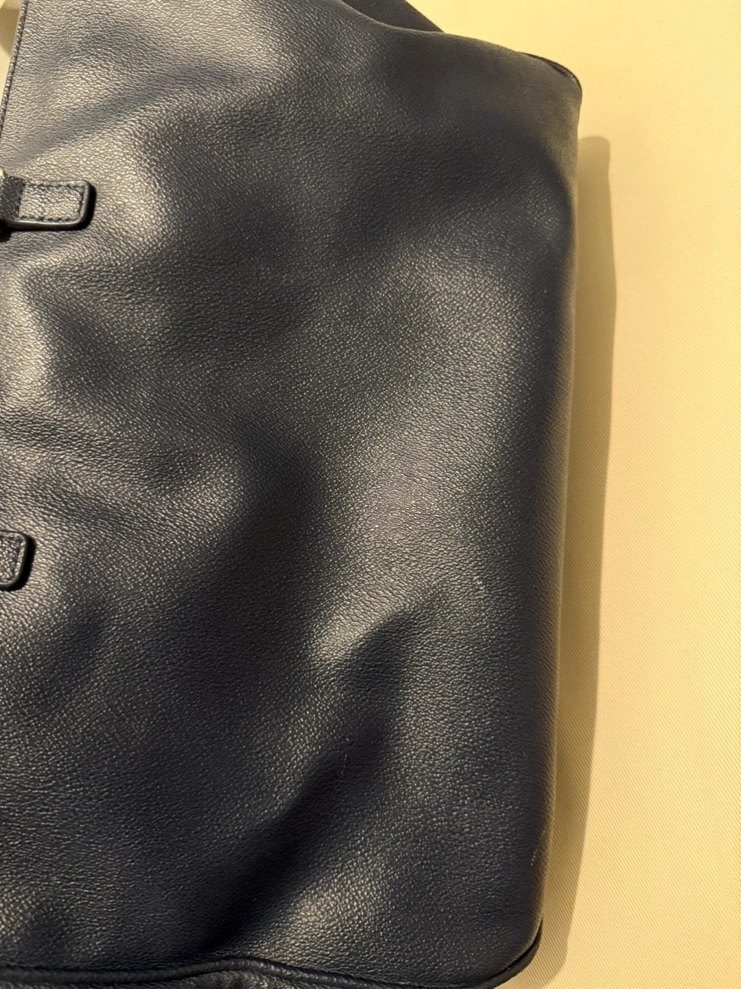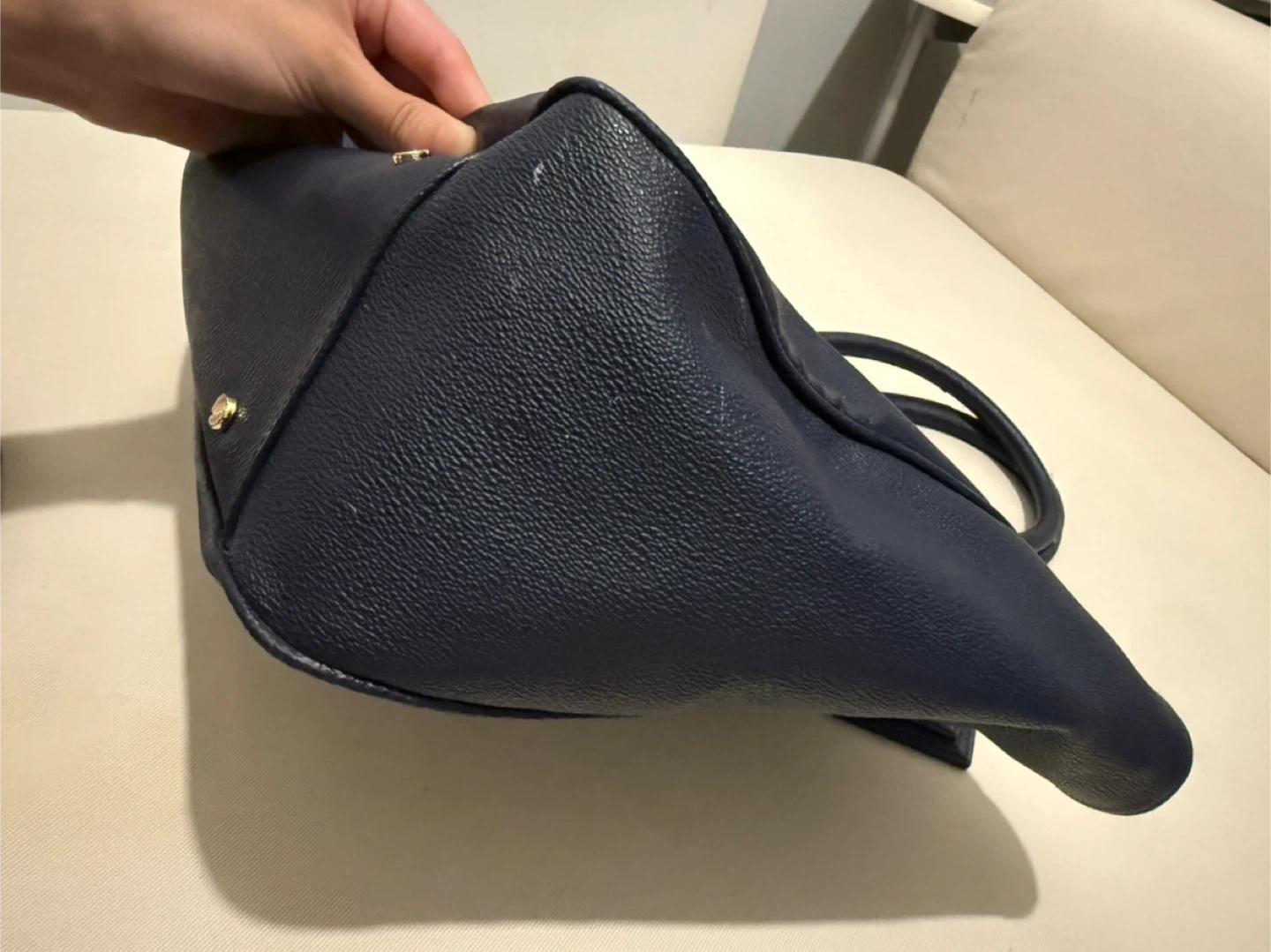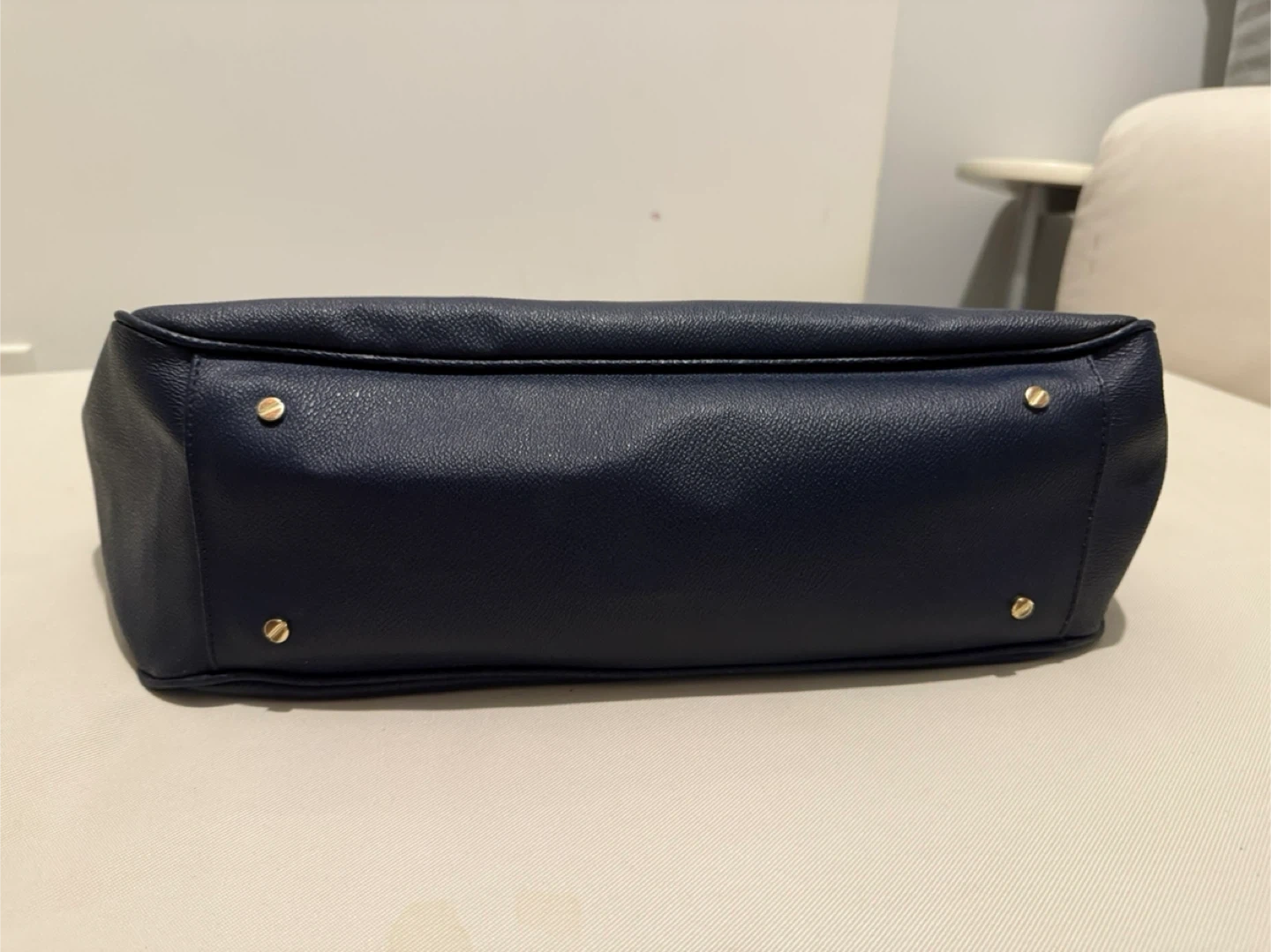 This is a lovely Tory Burch tote bag in a beautiful navy colour. It's perfect for business and semi-business occasions. There are some flaws as shown in pictures, reflected on price. It's in good condition and ready for a new home!