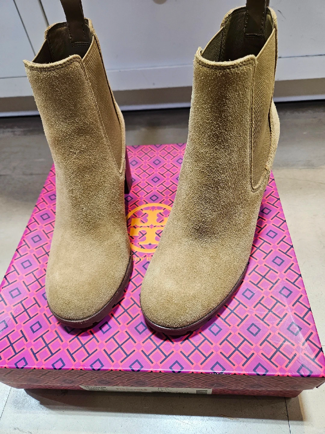 81These Tory Burch heeled ankle boots are in great condition! They're a beautiful tan suede and are a size 8. Perfect for adding a touch of style to any outfit