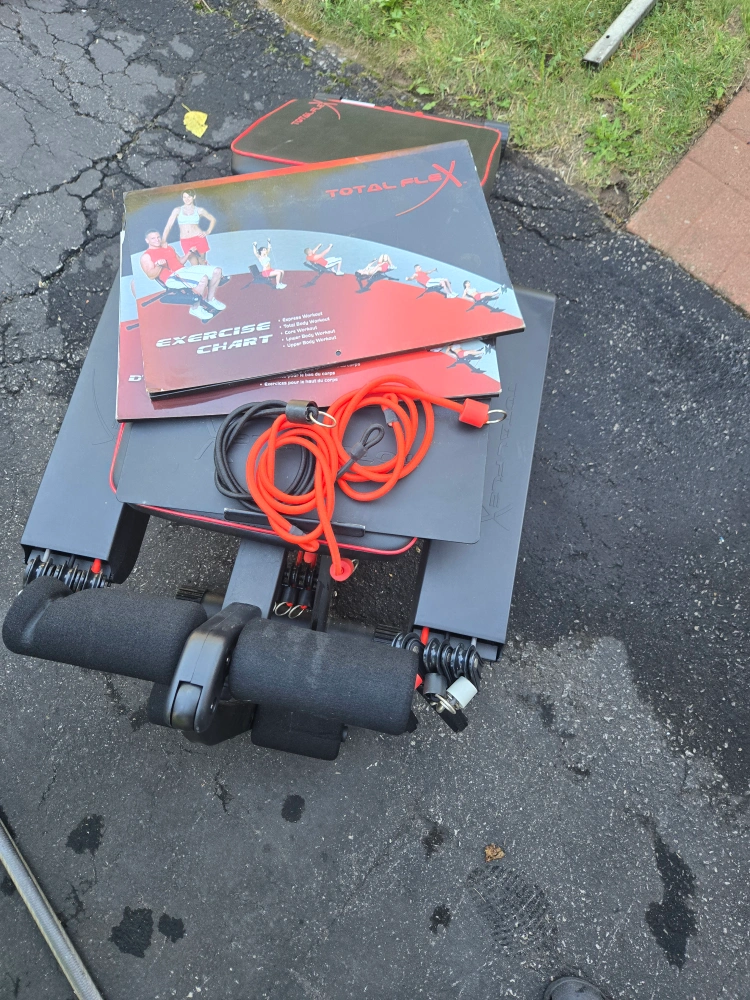 Selling a Total Flex home gym. It comes with the exercise chart and resistance bands. Great for getting a full body workout at home!