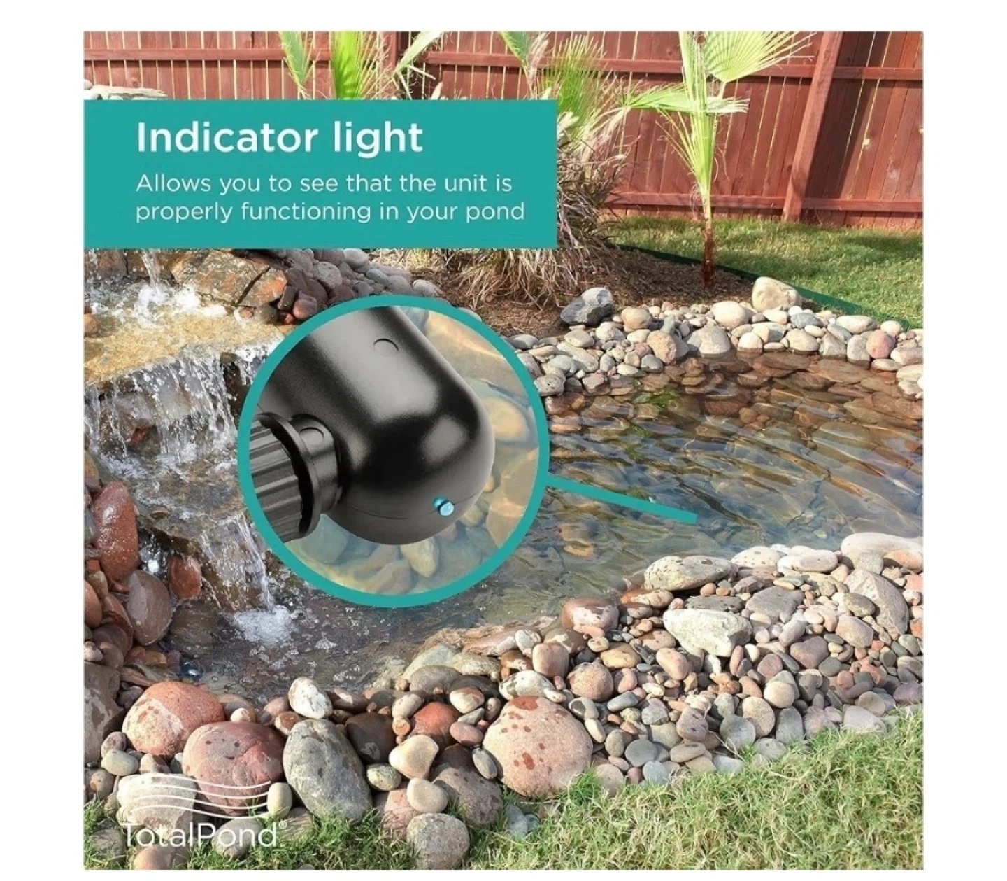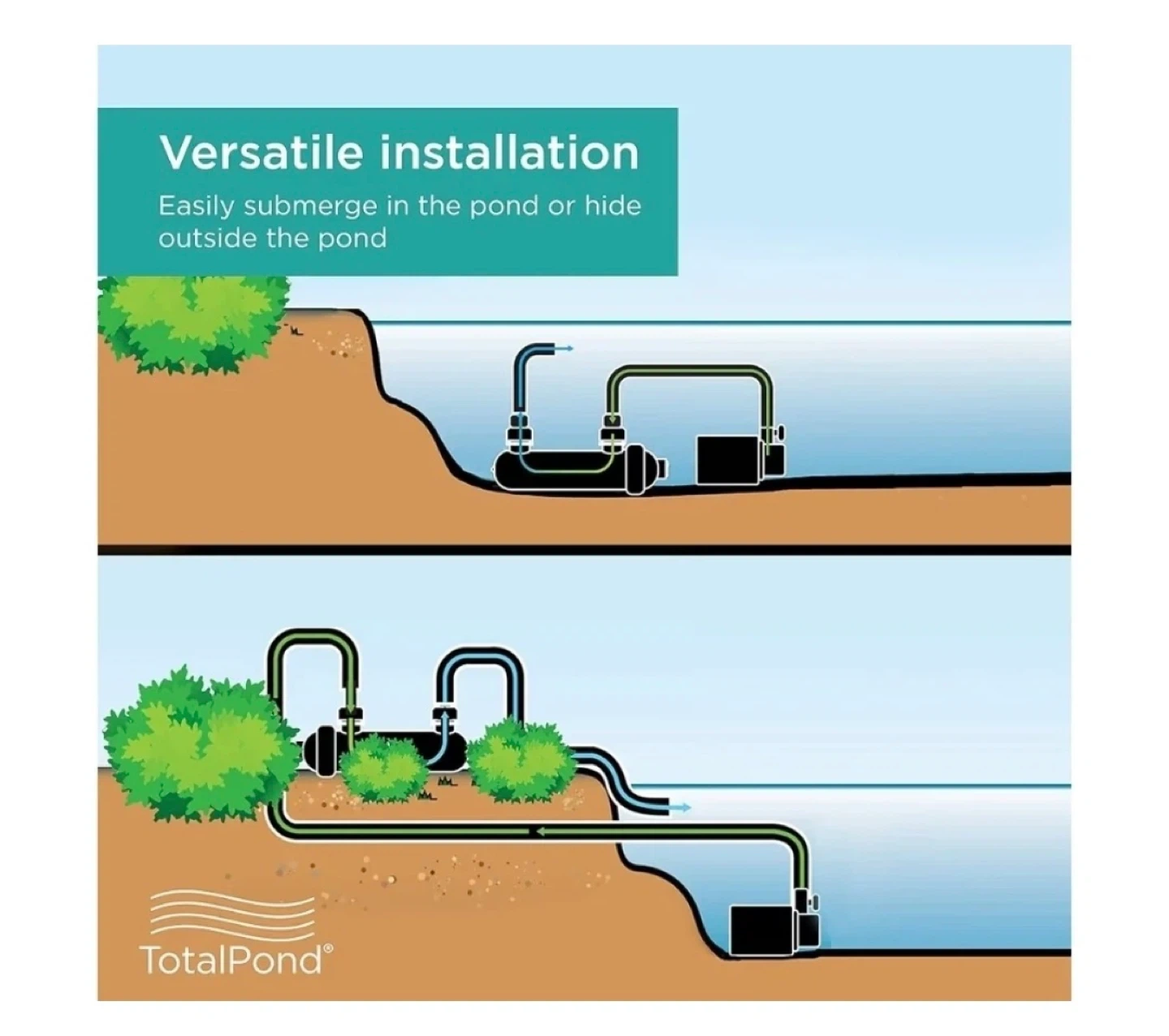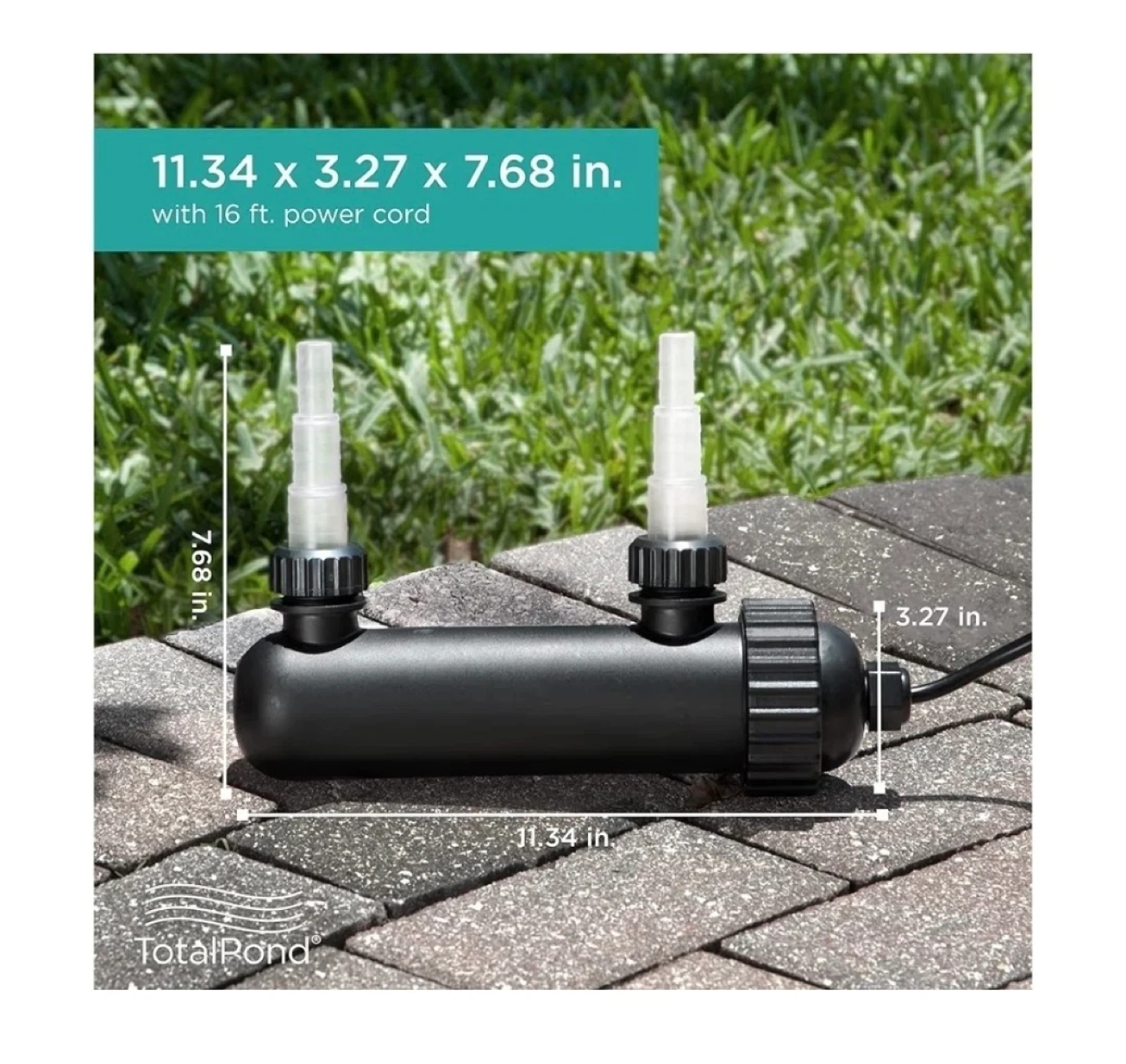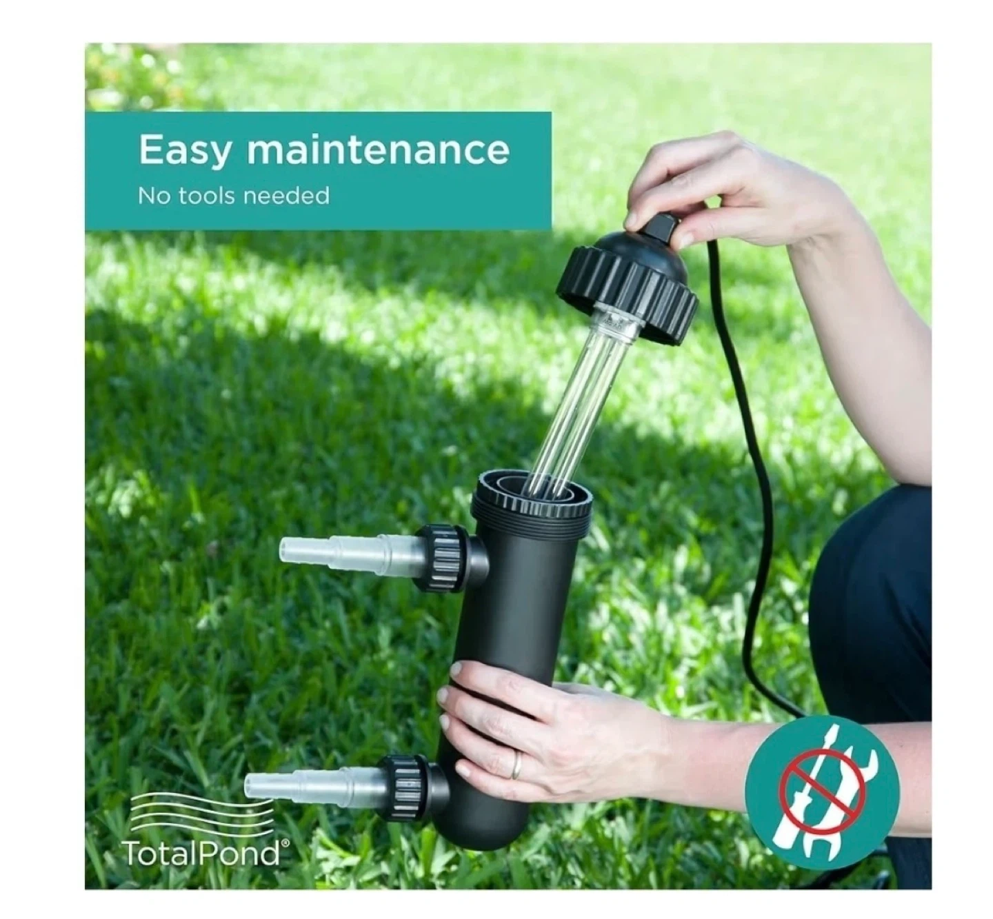 133Keep your pond crystal clear with this Total Pond 9W UV Clarifier, designed to sterilize water and eliminate green water using light bulb technology, ensuring a clean and fresh aquatic environment, it is new in box. $100 Model 52301 Key Features: * 9-watt UV clarifier * Cleans green water * Helps balance the pond and maintain water clarity * For use with ponds up to 2,000 gallons * Helps keep the heater clean * Easy-to-read indicator light
