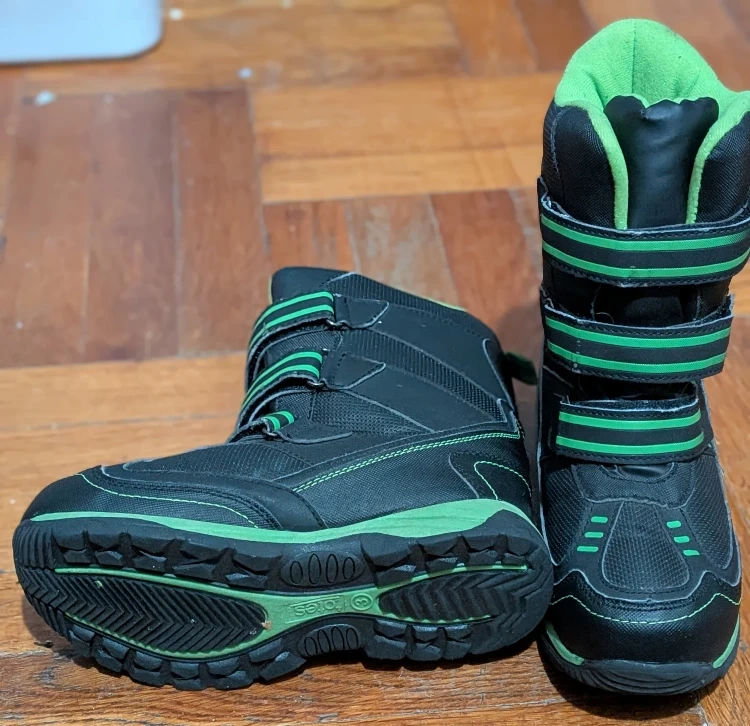 86Keep your little one warm and stylish with these Totes winter snow boots! They're perfect for snowy days and outdoor adventures. The black and green color combination is super cool, and they're in great condition. These boots are ready for some fun in the snow! Size 3