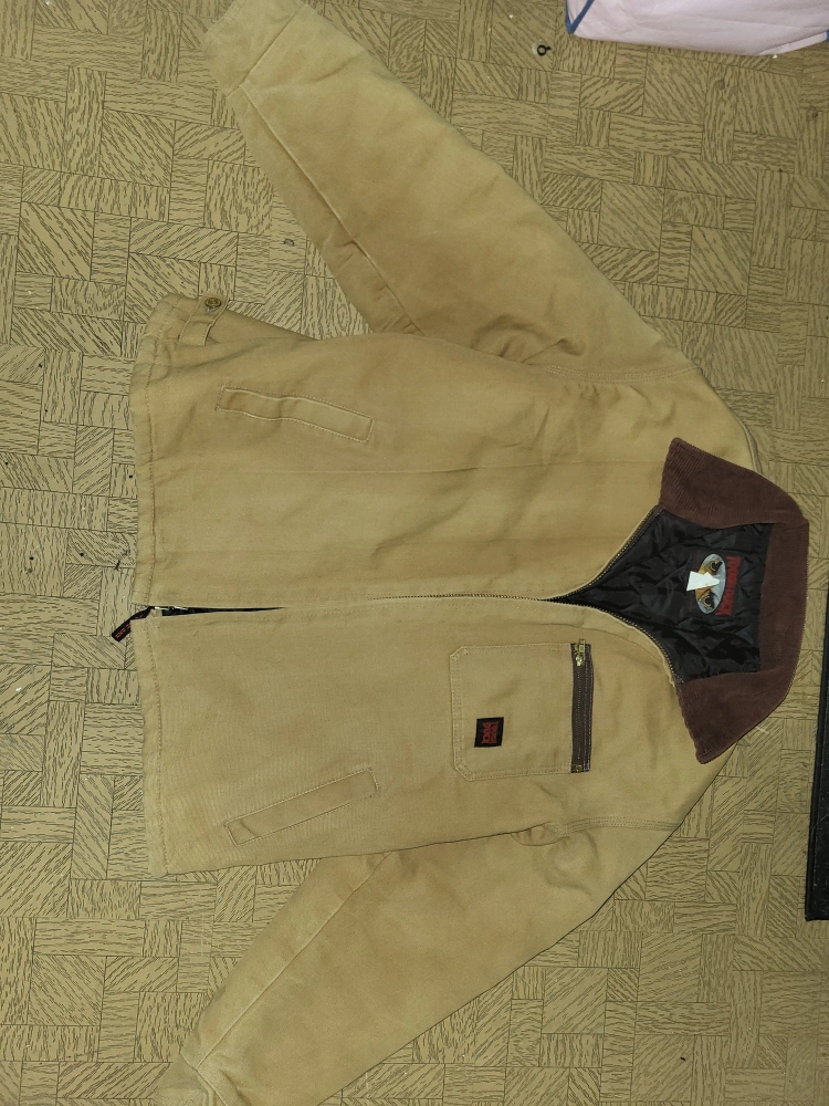Selling a barley worn work jacket. The jacket is nice and thick as well as comfortable to wear. small zip up pocket on right as well as pen/pencil pocket on the inside (CASH ONLY)