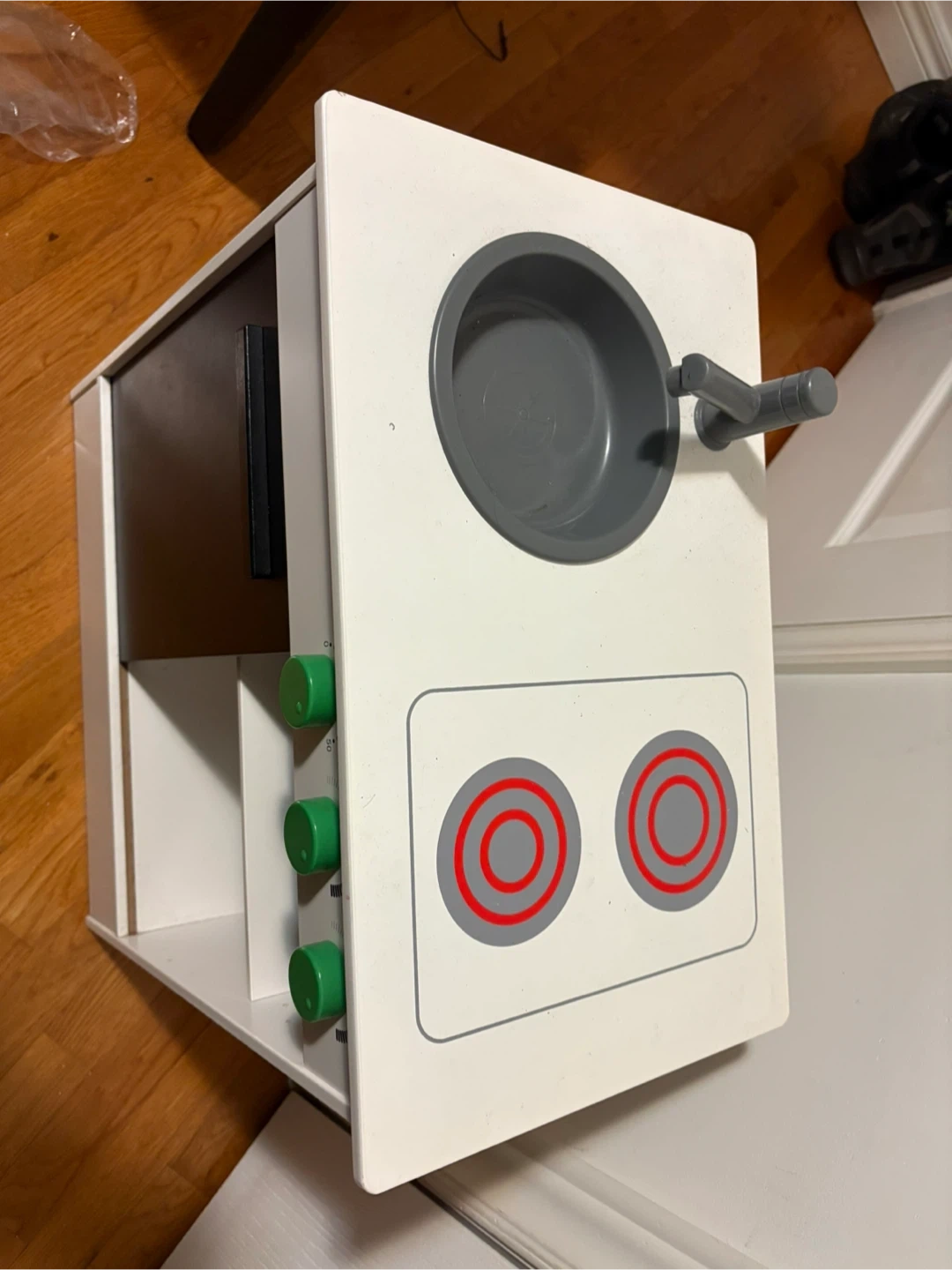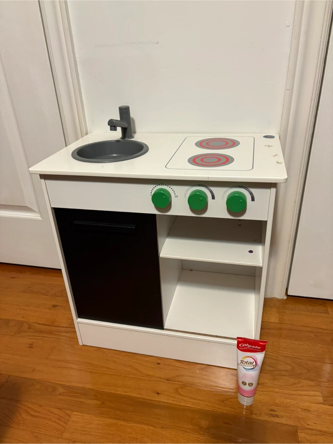 957A cute toy kitchen set for your little one! It has a sink, stovetop, oven, and storage space. Perfect for imaginative play and learning about cooking. 20” tall x 12” deep x 19.5” wide.