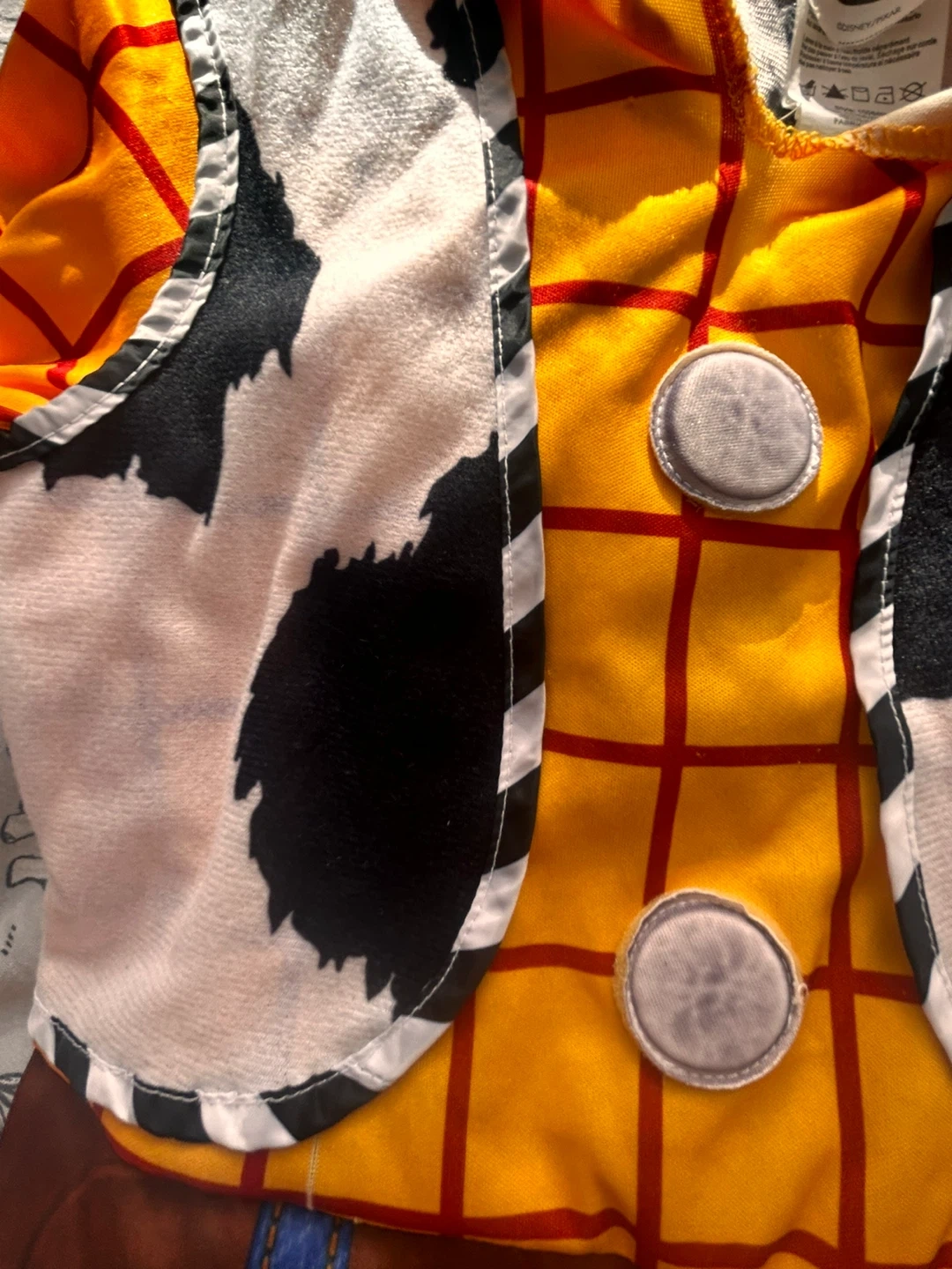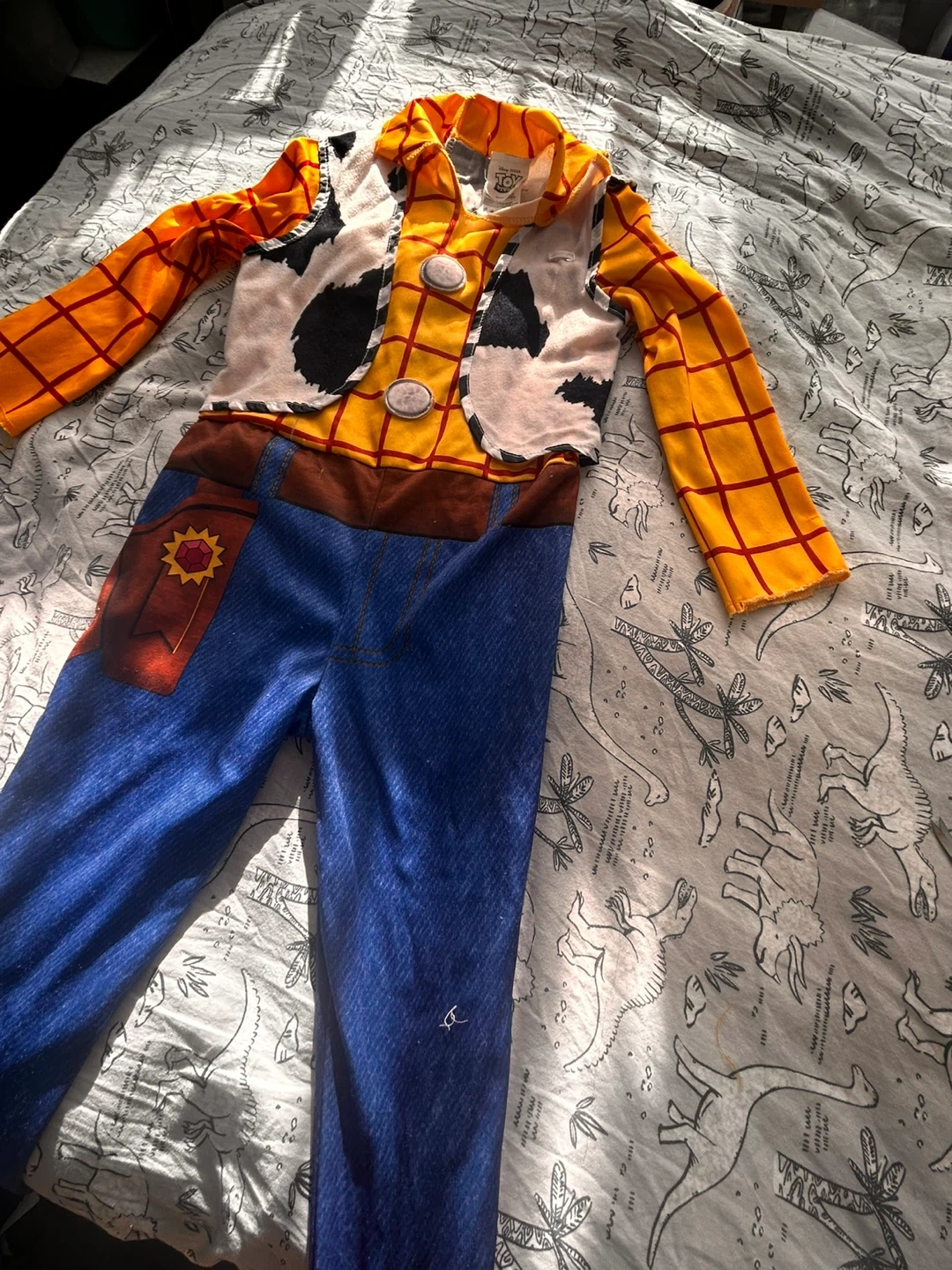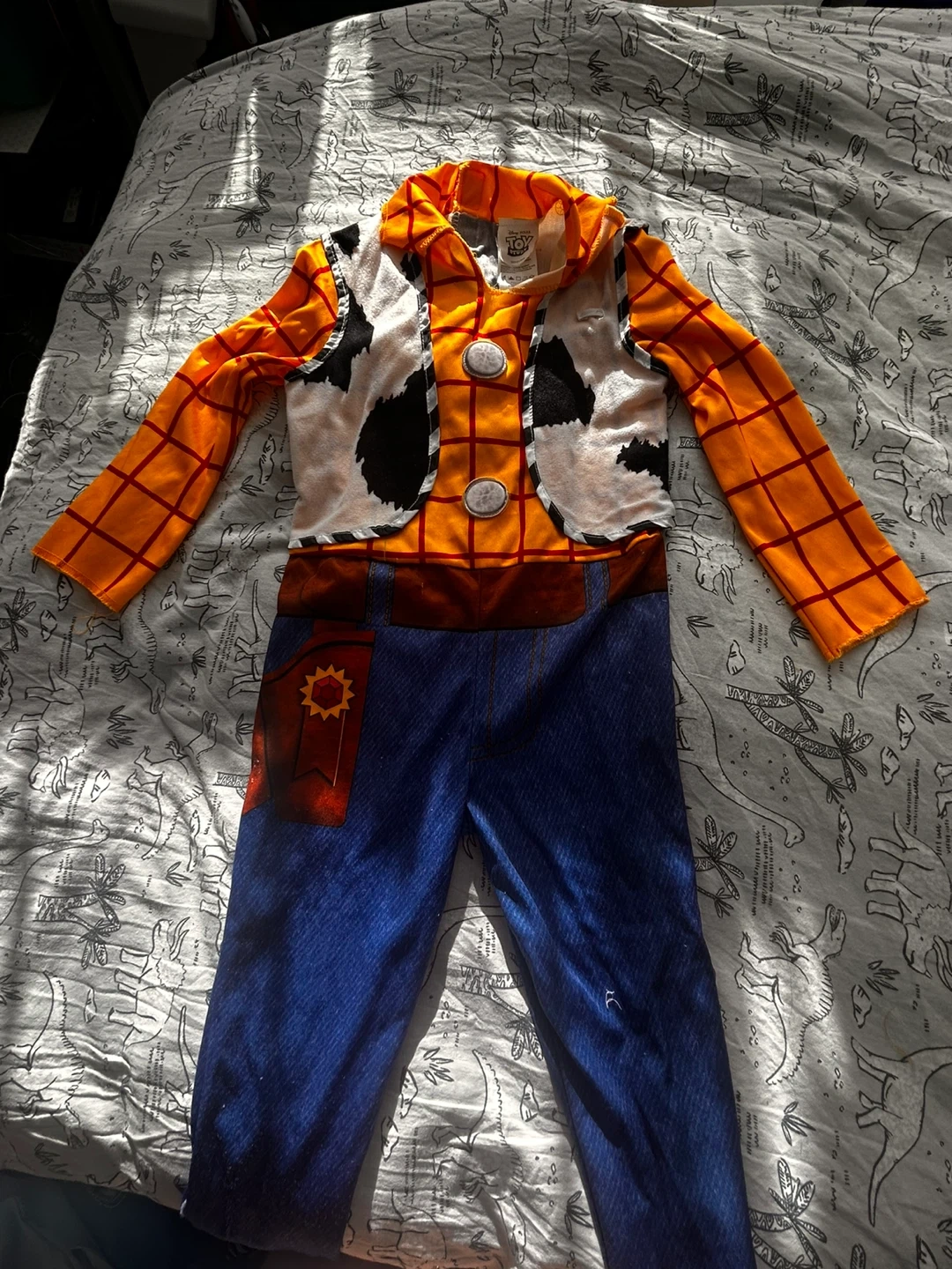 Howdy partner! I'm selling a Toy Story Woody costume. It's a size XS, which fits sizes 3T-4T. Perfect for your little one's dress-up adventures!