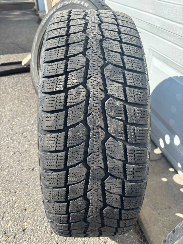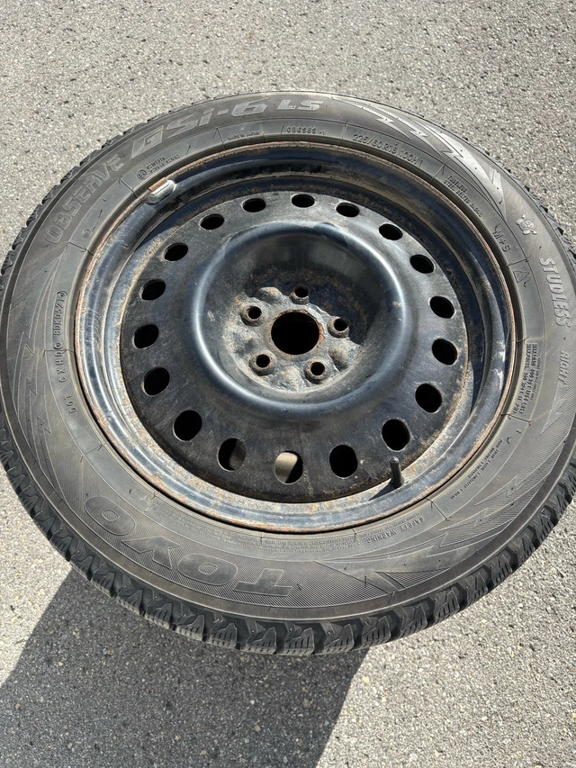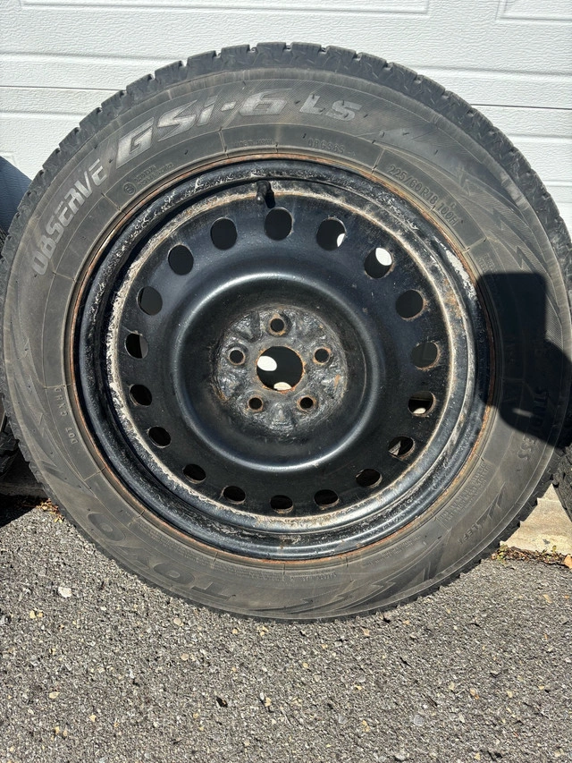 5I have for sale a set of 4 Toyo Observe GSi Winter Tires on 18” Steel Rims. The tires were previously mounted on a 2019 Toyota RAV4 XLE AWD. Tire size: 225/60R18 100H Rims: 18” Steel Bolt pattern: 5 - 114.3mm Hub Bore: 60.1mm The tires were previously mounted on a 2019 Toyota RAV4 XLE AWD. The tires are in excellent shape with low KMs and have been stored in the basement indoors. Also as seen in the photos, the steel rims are in like-new condition, you could use touch up paint if you’d like to restore the original shine. The reason for selling is we have recently changed to a Nissan Rogue and unfortunately the rims do not fit the Nissan (the hub bore is 6mm larger on the Rogue vs the RAV4). I am asking $800 for the set of 4 tires and rims. For pickup, I am located in South Barrhaven near the Minto Recreation Centre. Thank you