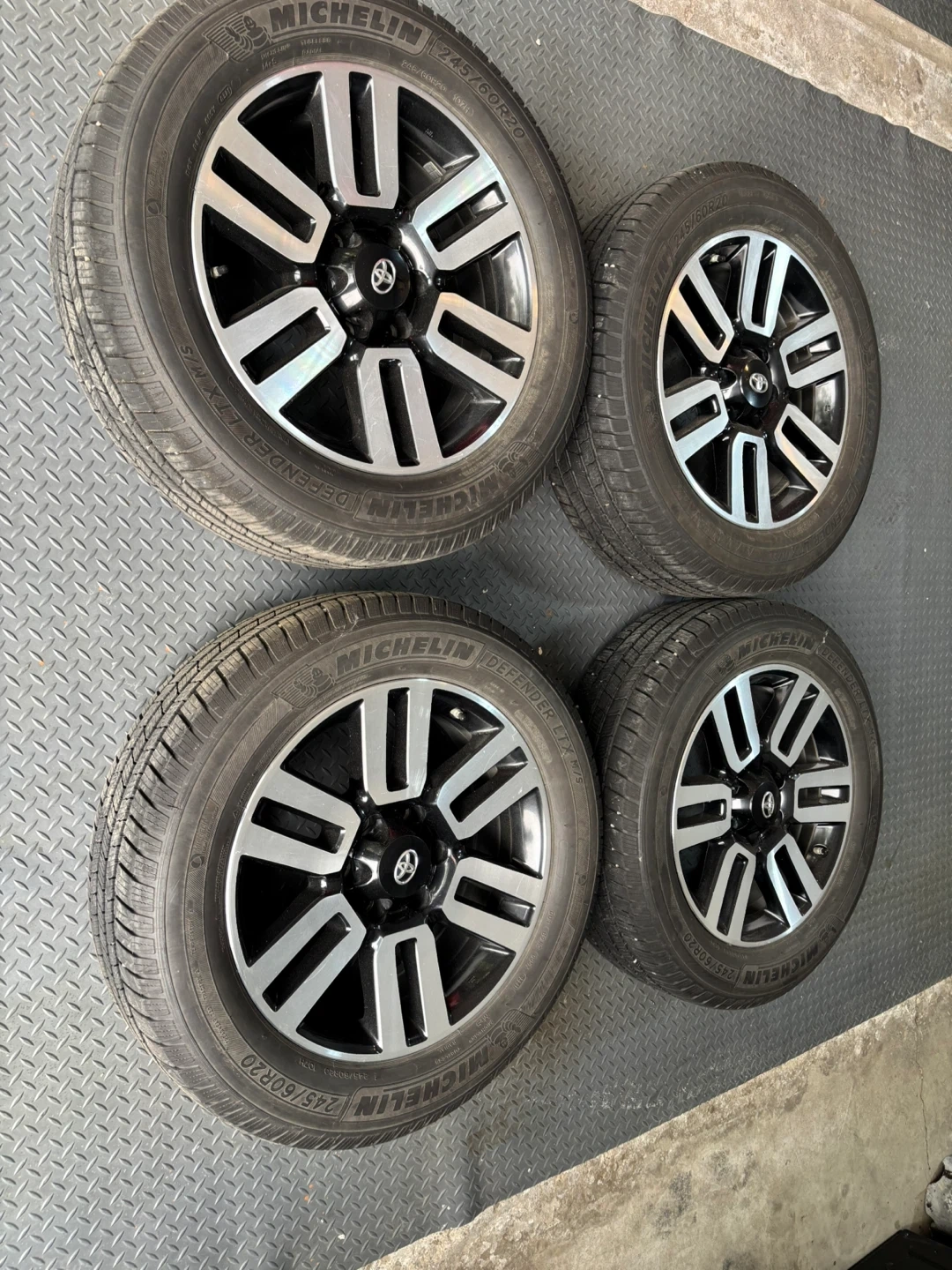 71Toyota 4Runner 245/60/R20 winter rims and tires. Michelin defender LTX mud and snow. 8/32 tread depth. In mint condition. Deep cleaned every season and stored properly indoors in a heated garage.