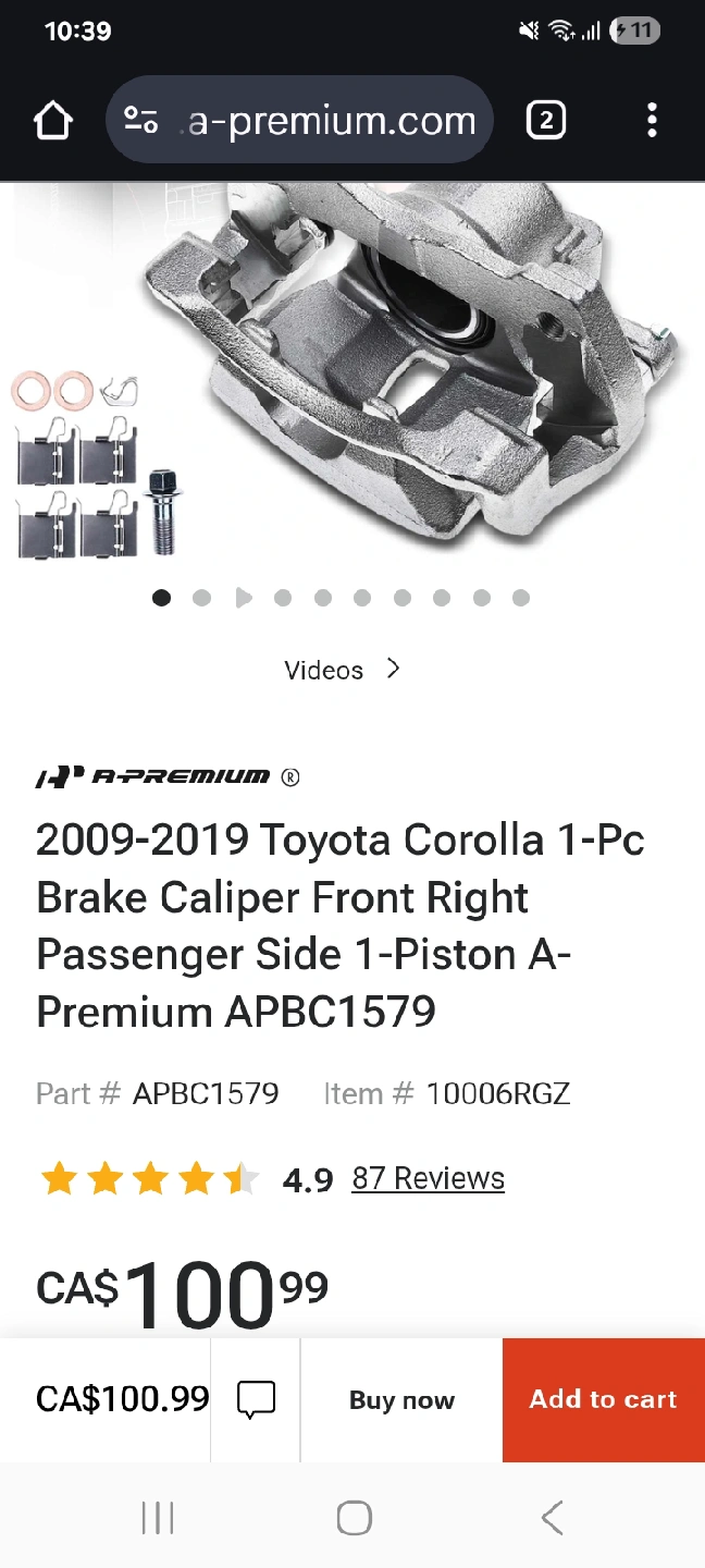 Selling a new A-Premium Disc Brake Caliper Assembly with bracket. Compatible with Toyota Corolla from 2009-2019. Toyota Matrix 2009~2014 Pontiac Vibe 2009~2010 Scion XD 2008~2014