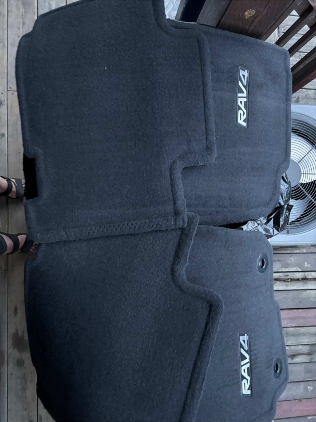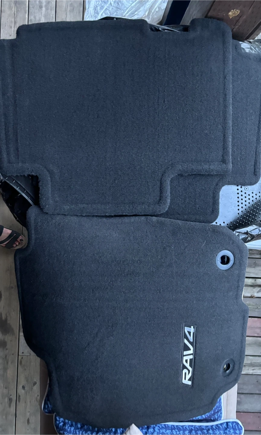 Selling a set of black plush carpet floor mats (4) for a 2017 Toyota RAV4 and front all-season mats. They're in great condition and ready to keep your car clean! Cash and pickup only.