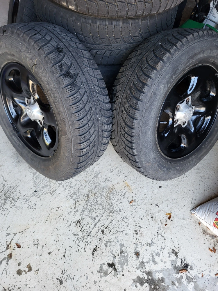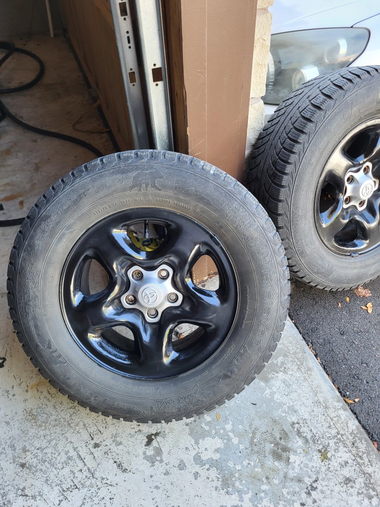 Selling a set of Toyota rims with winter tires size 225 70 16. They are in used condition and ready to go onto your vehicle for winter driving.