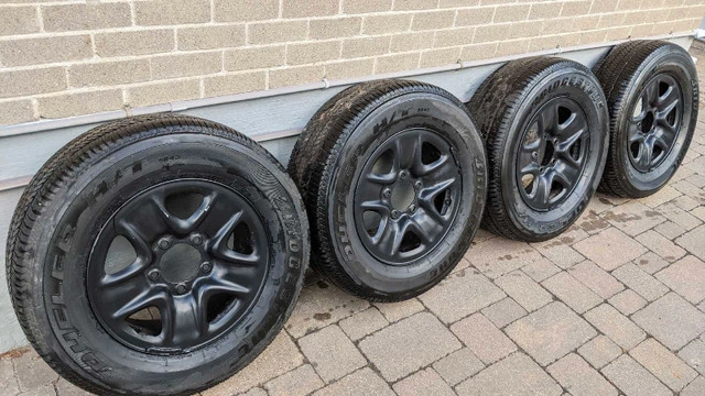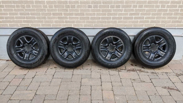 1018" Steel rims off a 2010 Toyota Tundra. In good overall condition. Rims have been plasti dipped black. Tires are old and need to be replaced. Ready for your set of winter tires!