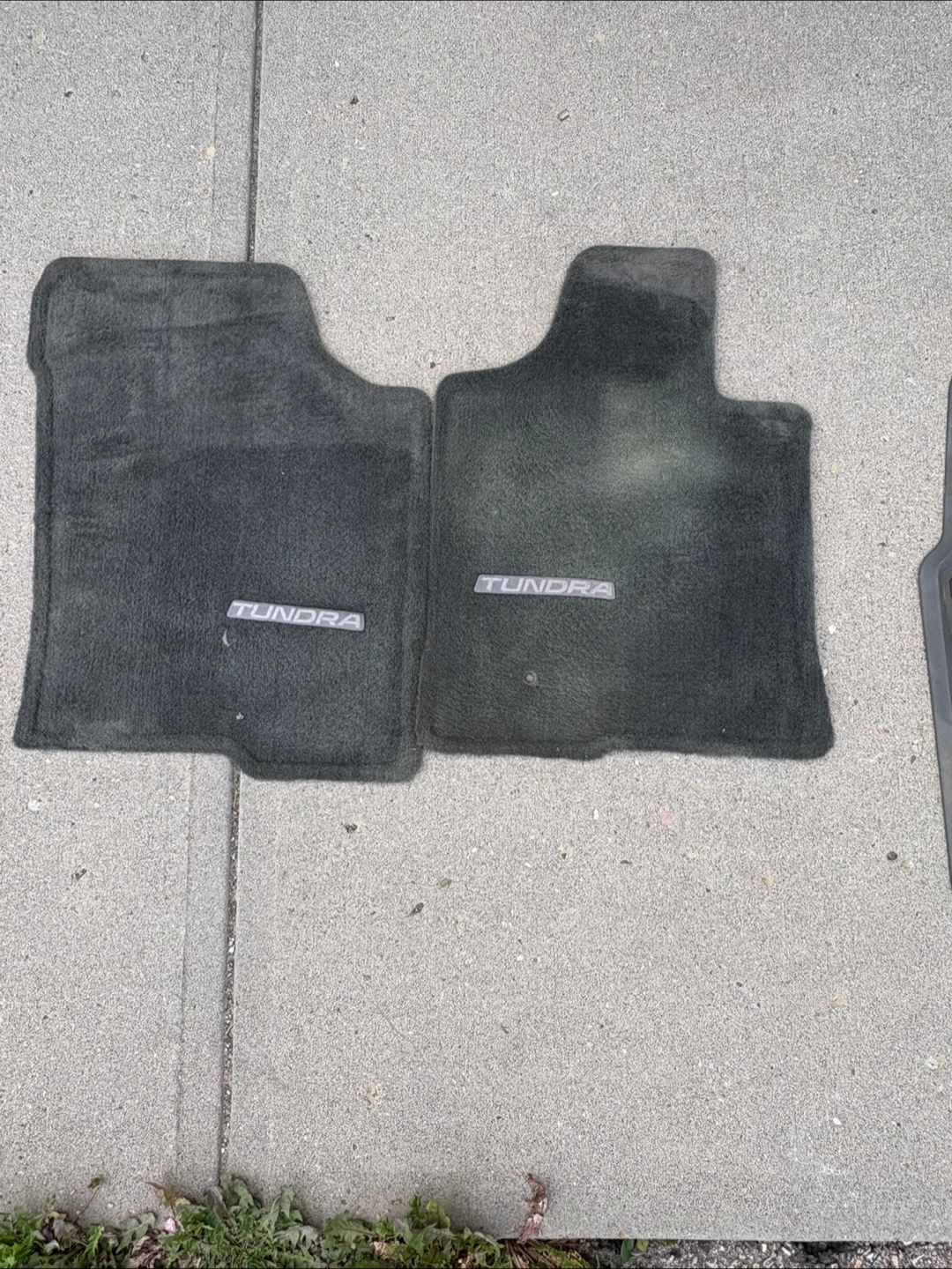 Selling a set of floor mats for a Toyota Tundra. They are grey and in used condition, with some visible wear. Perfect for protecting your car's interior. Meet up in Royal Oaks NW