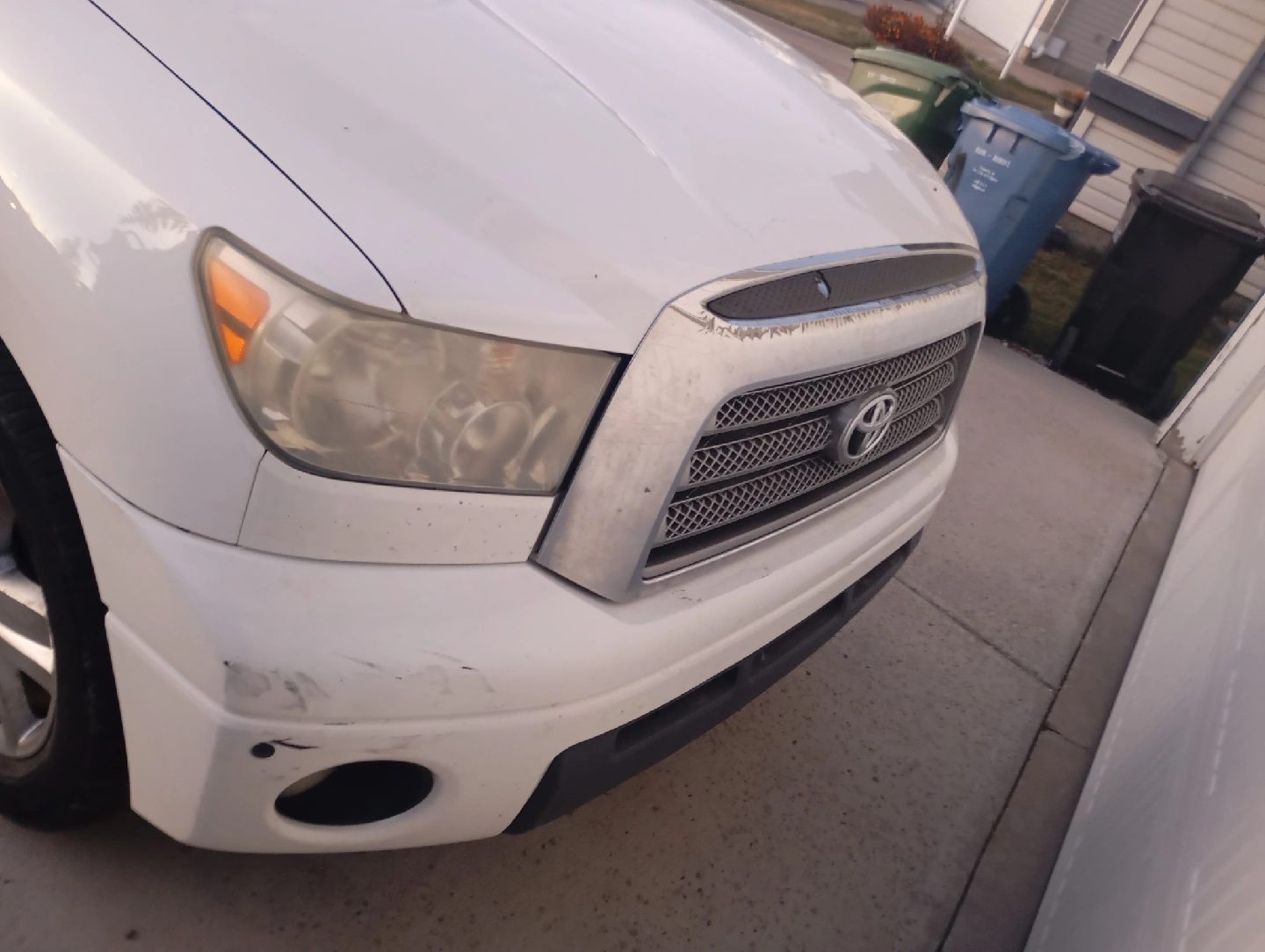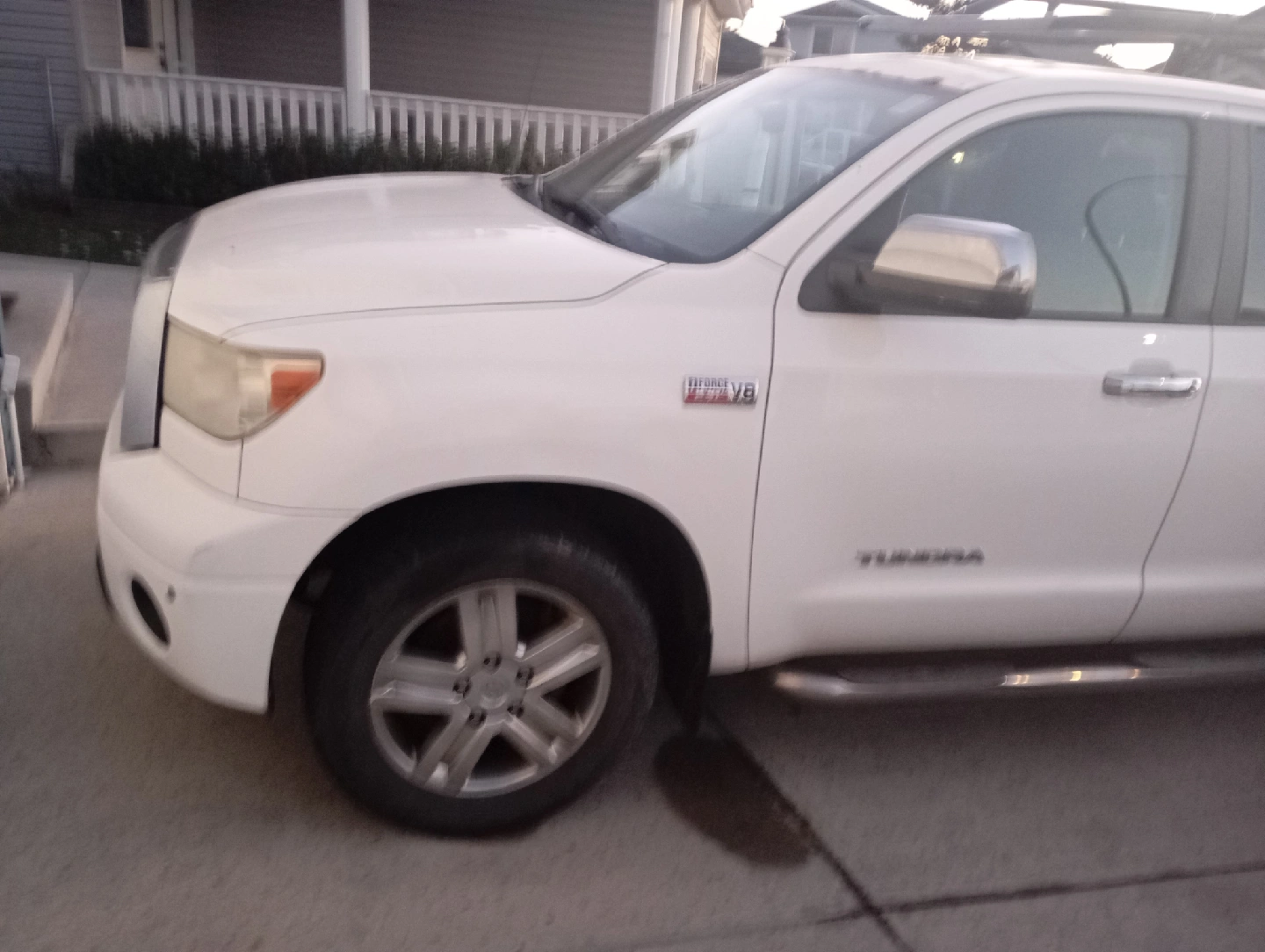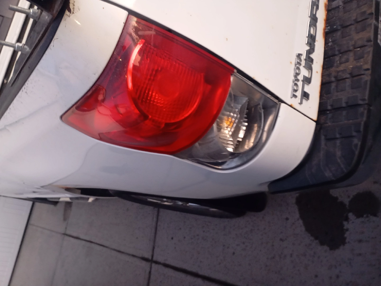 Selling a Toyota Tundra truck. It has a rack installed. There are some signs of wear and tear, including rust and scratches, as shown in the pictures