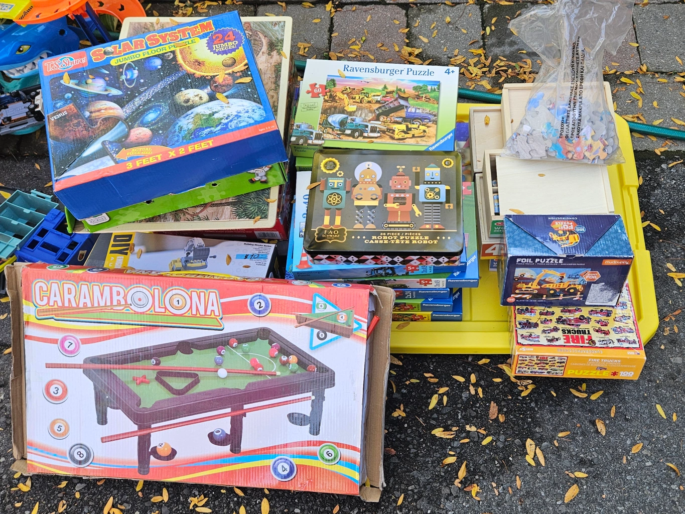 15Hot wheels tracks, puzzles, cars, trucks, toys, baby swing, bouncer, clothes 0-6 months, shoes, bottler warmer, chopper and steamer