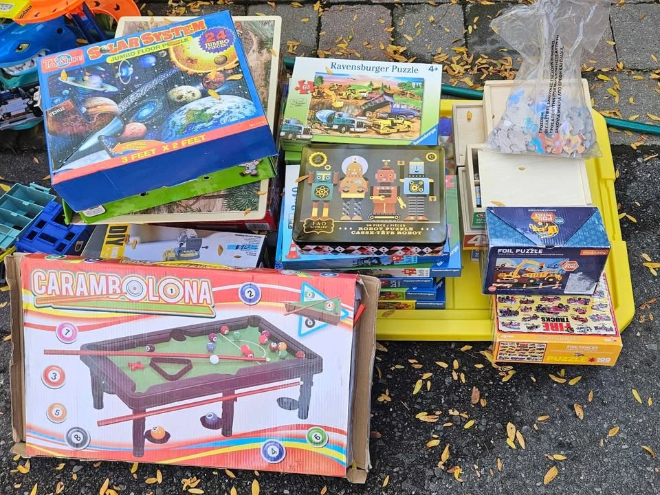 Trucks, puzzles, hot wheels, and more Inquire about price Big lot of cars in box for $50