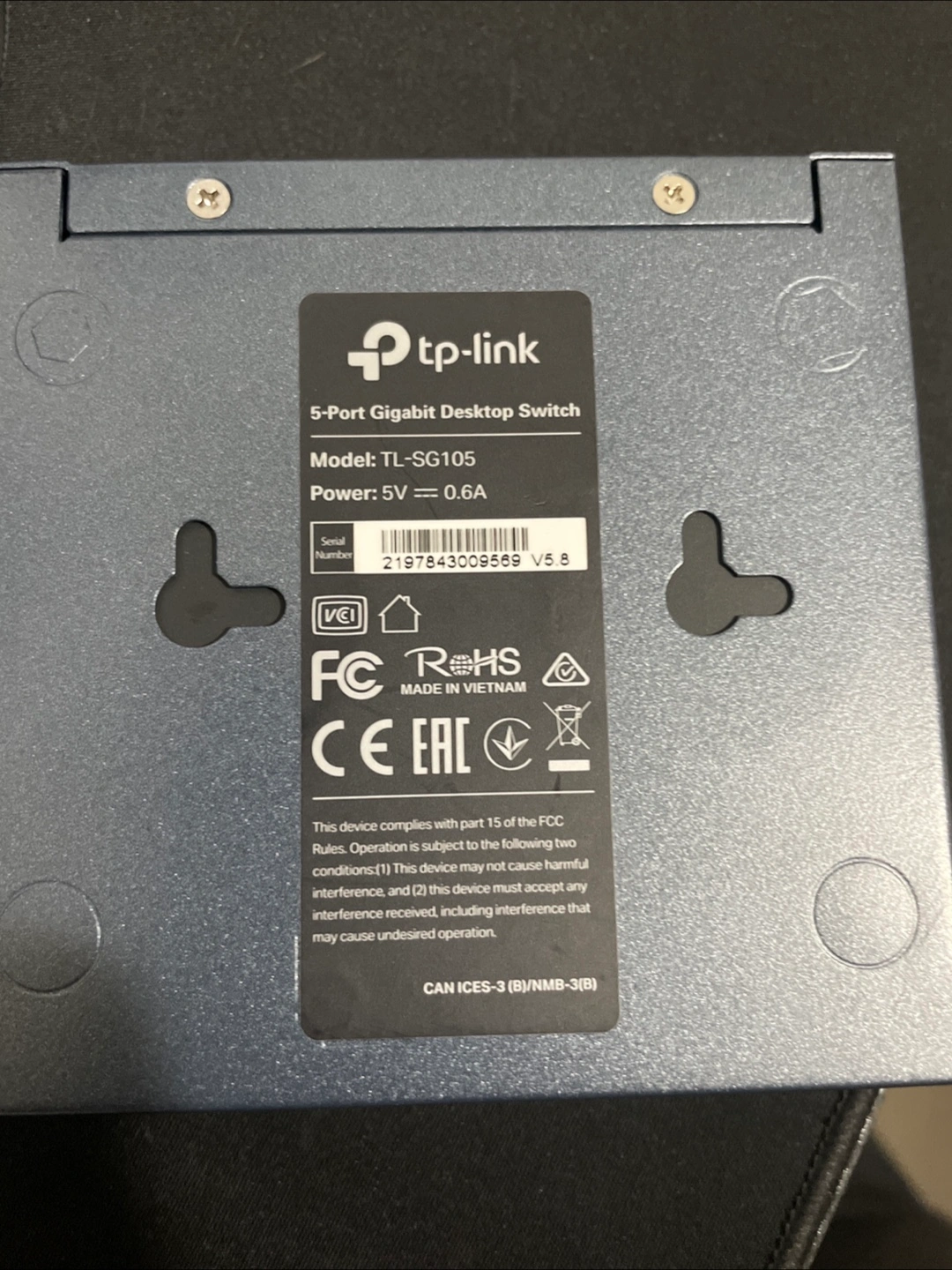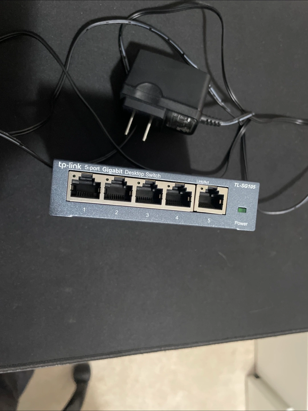 20A desktop switch with 5 ports. Comes with a power adapter. Can be a great addition to your home network to allow more wired connections.