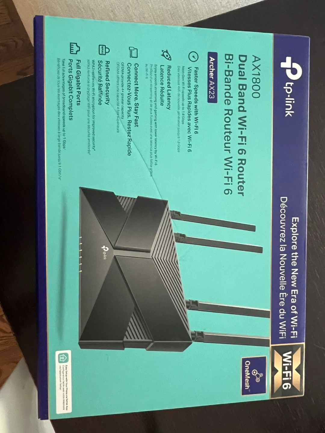 Selling a TP-Link AX1800 Dual Band Wi-Fi 6 Router. It comes with the box and all the components. Full Gigabit Ports, Refined Security, and Connect More Stay Fast. Discover the Nouvelle Ère du Wi-Fi!