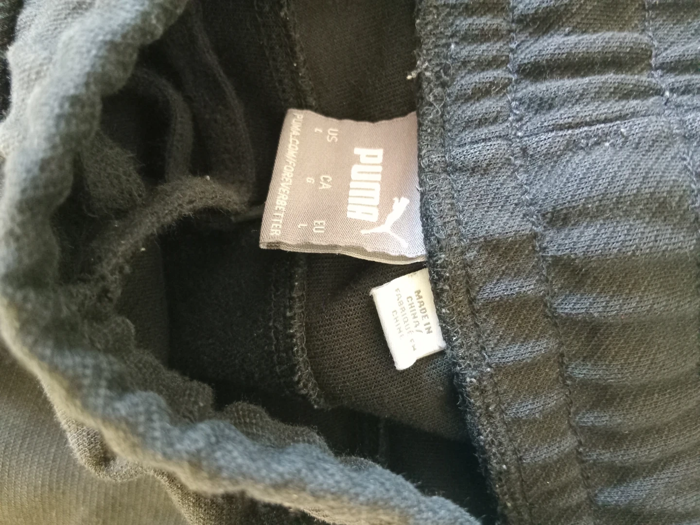 These are black Puma sweatpants. They're made of a comfortable material. They're suitable for casual wear.