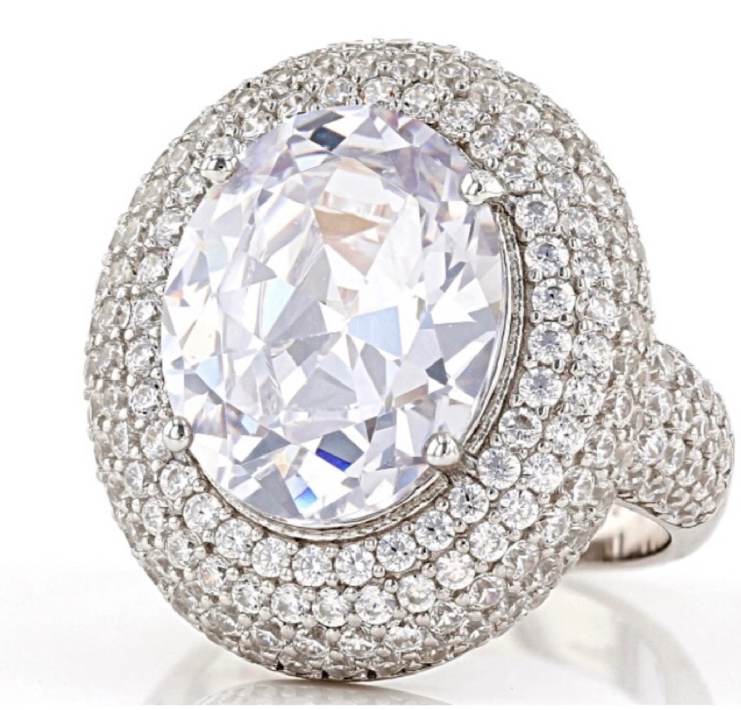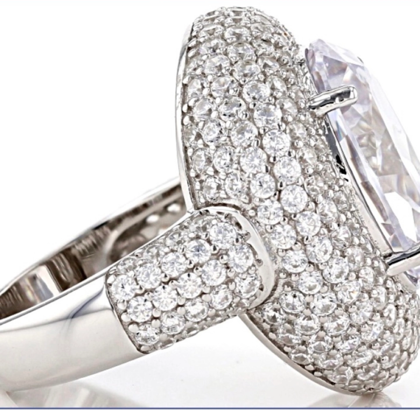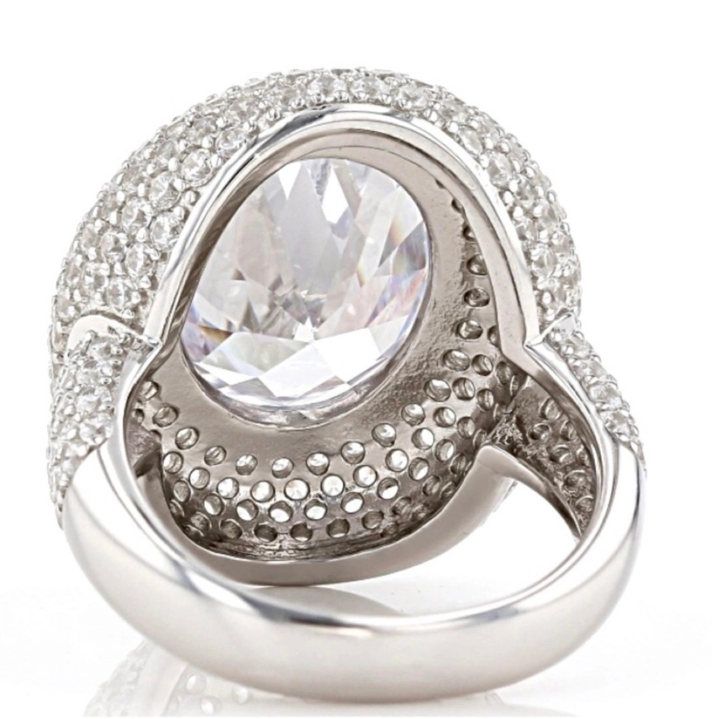 Big Ring White Cubic Zirconia Rhodium Over Sterling Silver Ring 14.52ctw