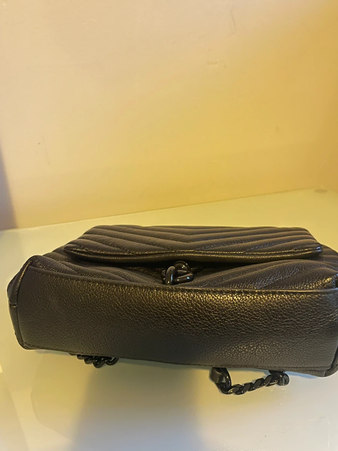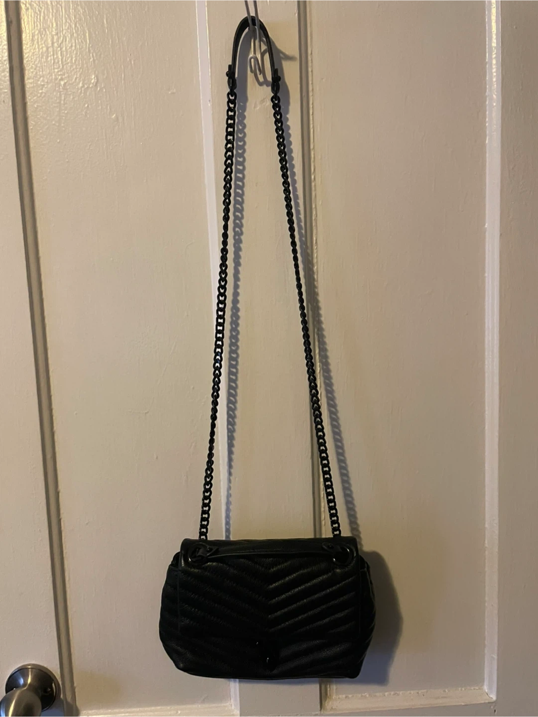 • Chic quilted leather bag with chain-link strap and dog clip