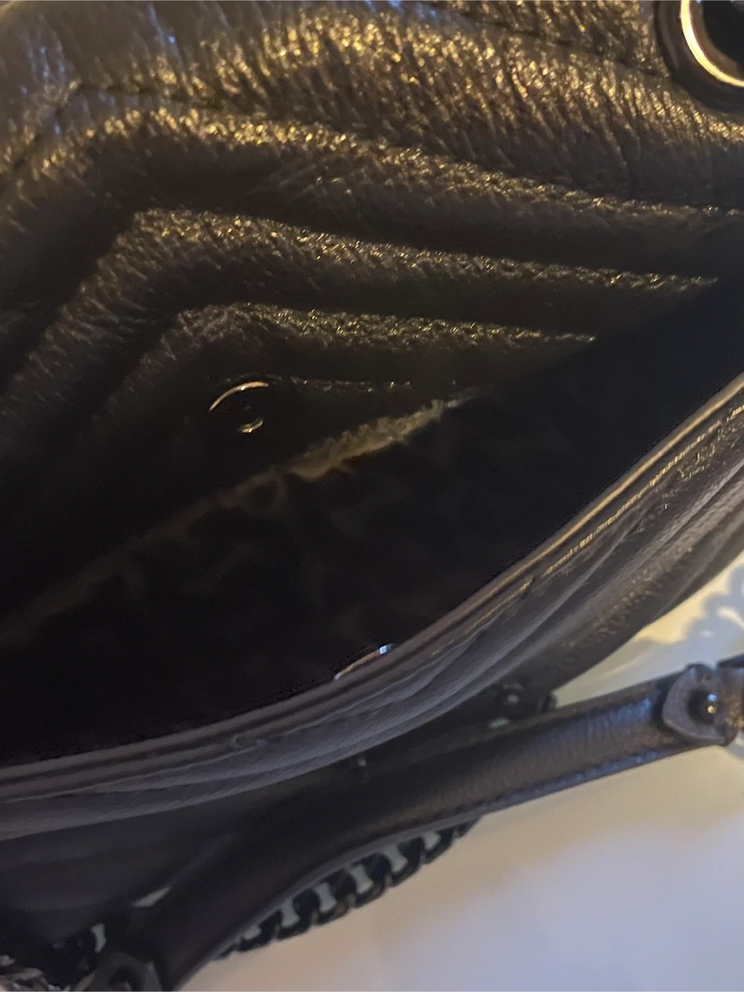 • Black lining, one exterior back slip pocket with magnetic clasp, one interior zip pocket