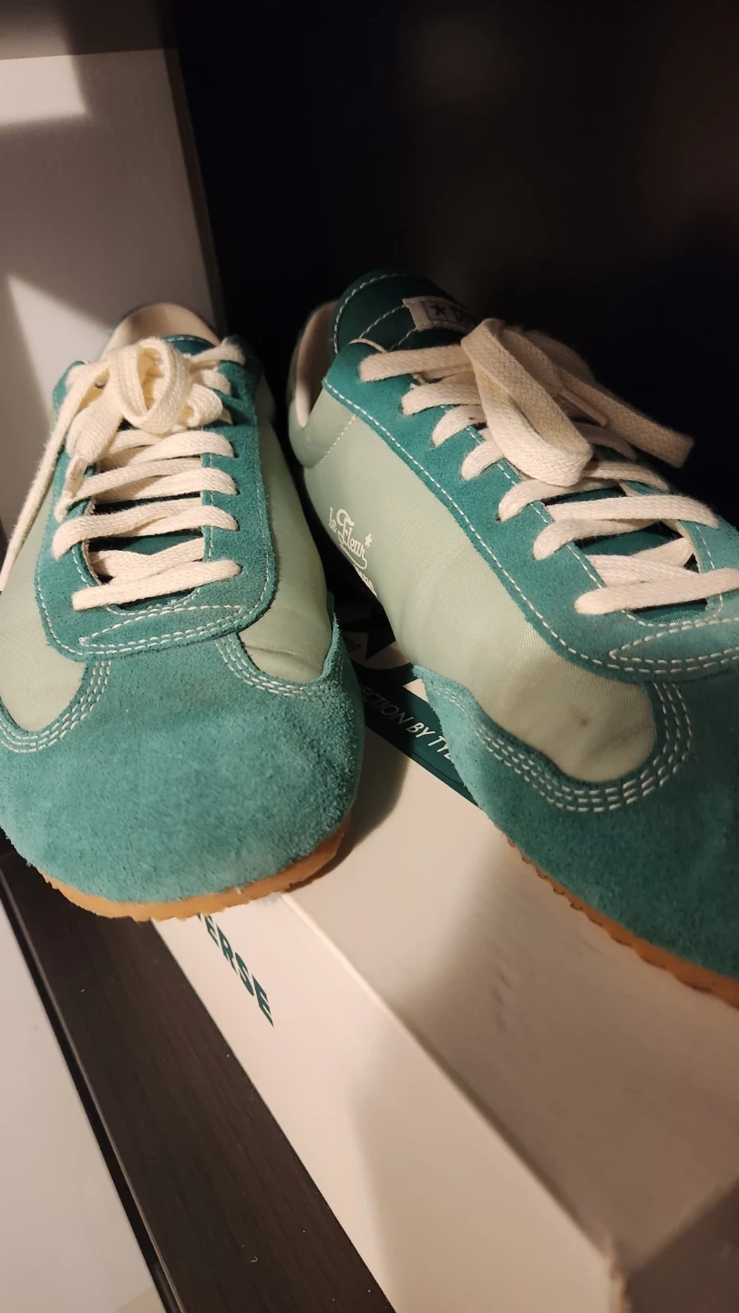 These are Converse Le Fleur Jogger shoes in a forest green colorway, worn a couple times, extra laces and box included with purchase, open to negotiations if needed.