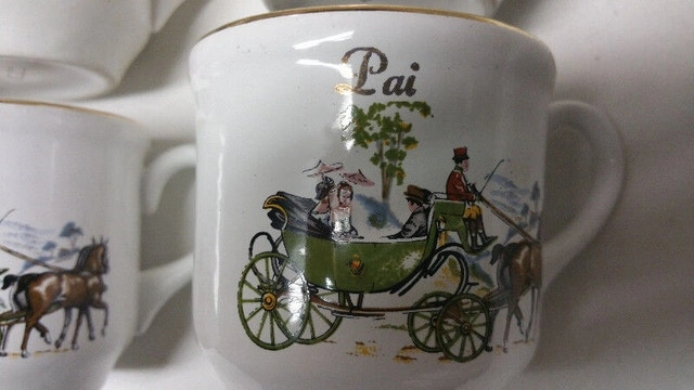 Vintage 4 Coffee Cup Mugs Ashtray Set Horse Buggy Portugal