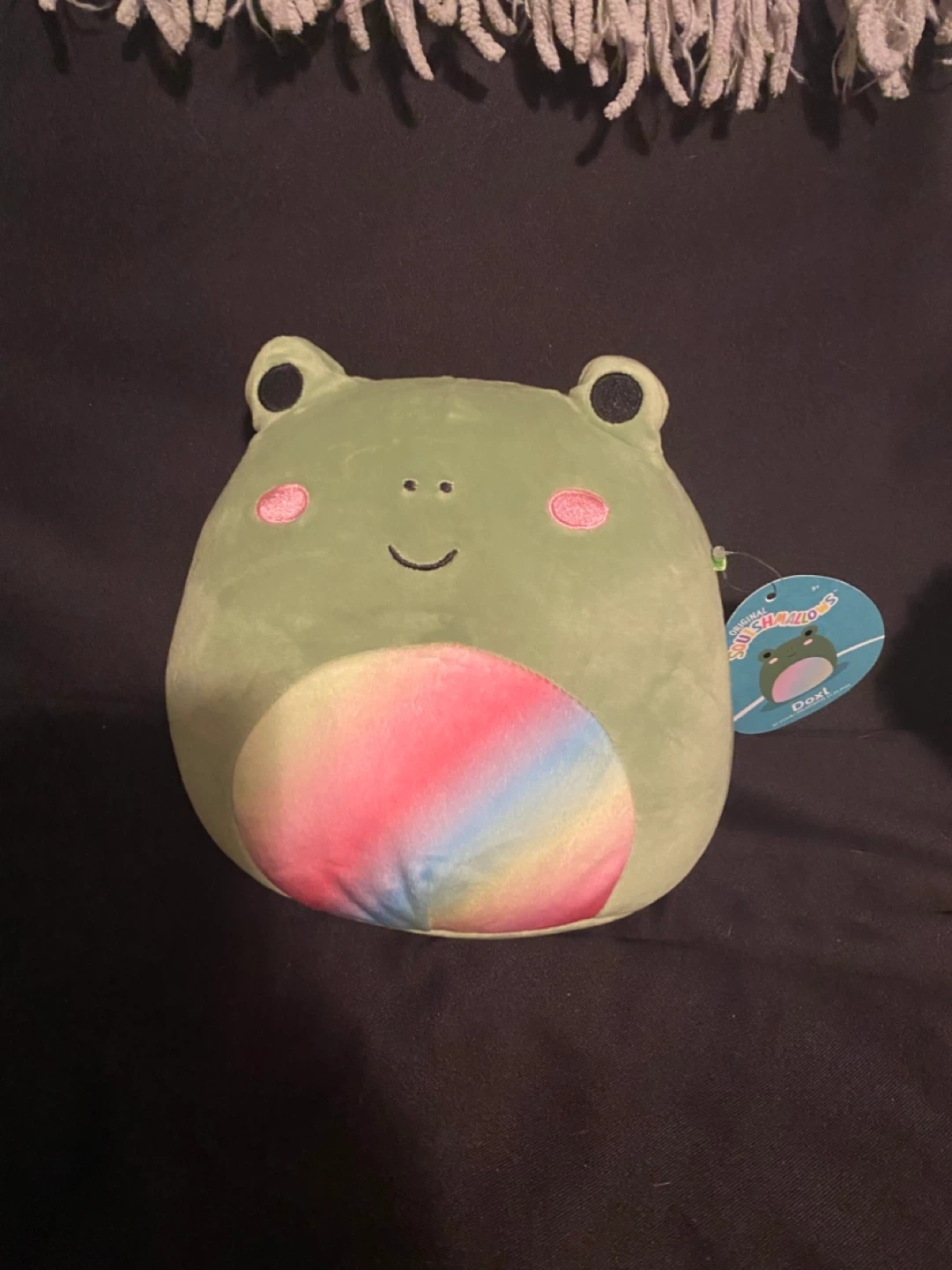 Selling a set of 2 Squishmallows Frog and Cat plush toys. The frog Doxl is approx 7.5” tall and the cat Felton approx 4-5” tall.