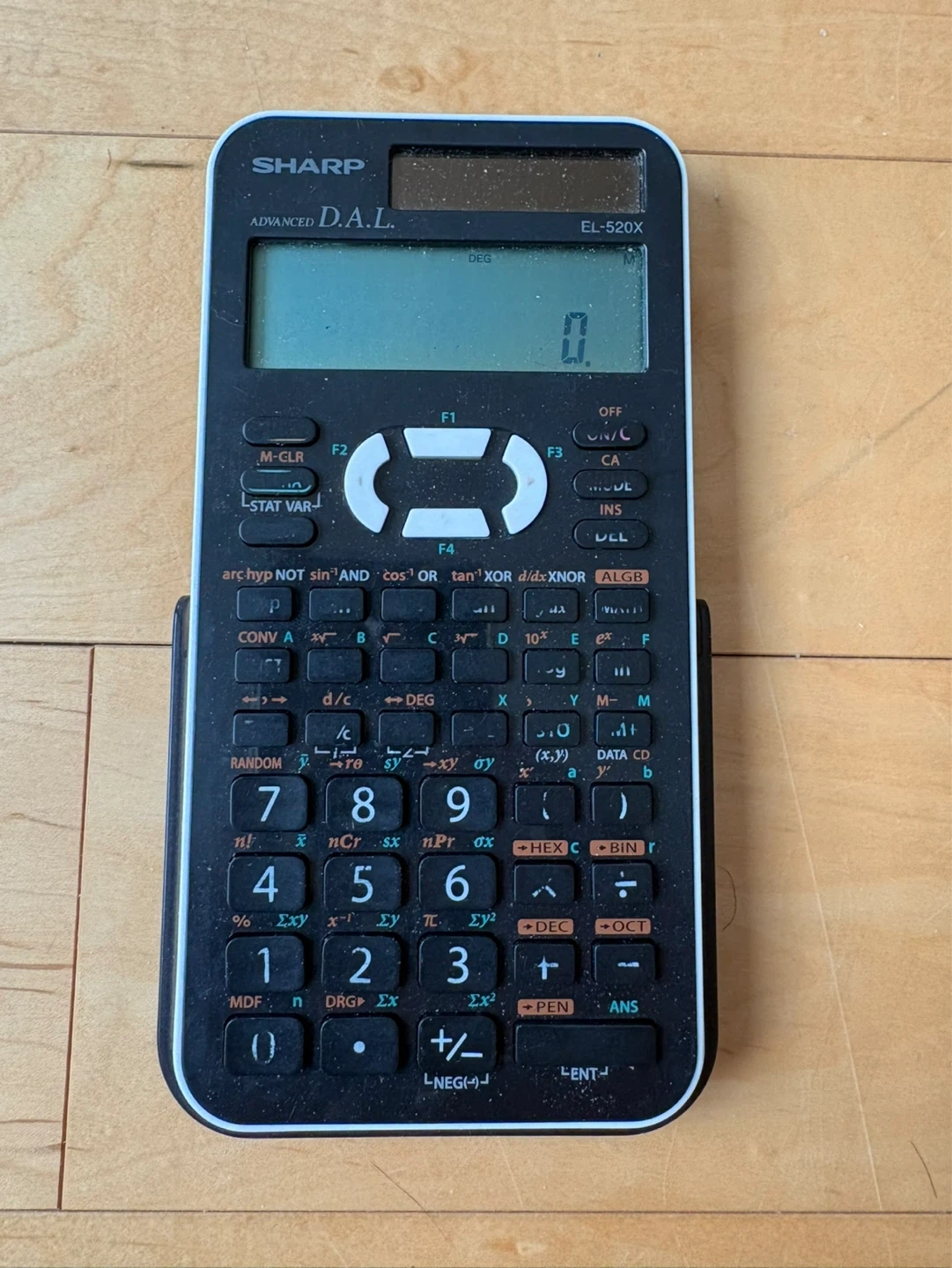 This is a Sharp EL-520X scientific calculator with Advanced D.A.L. It's in good working condition. Features include advanced functions for math and science.