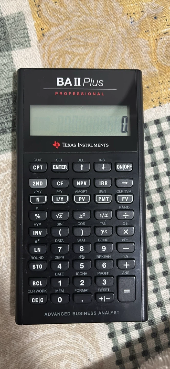 Selling a Texas Instruments BA II Plus Professional financial calculator. It's in great shape and perfect for finance students or professionals. It's an advanced business analyst tool that can help with a variety of calculations