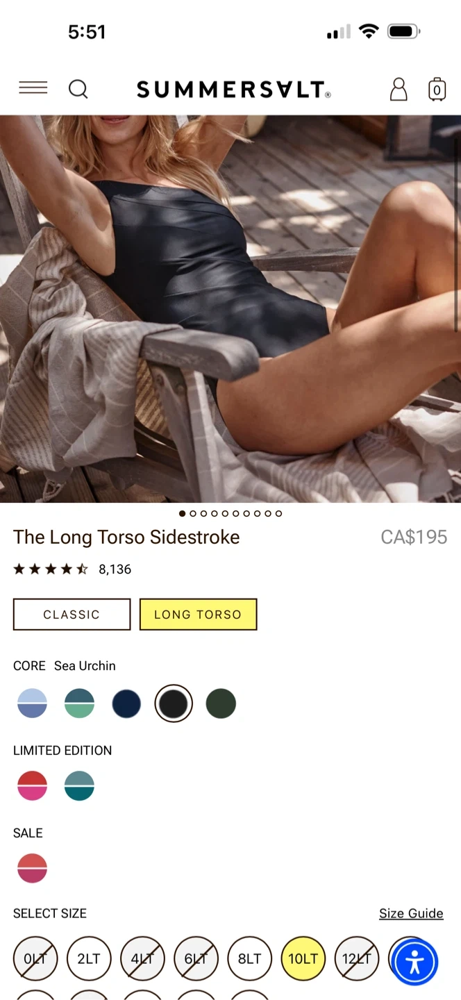 Summersalt The Sidestroke Size 10 long torso