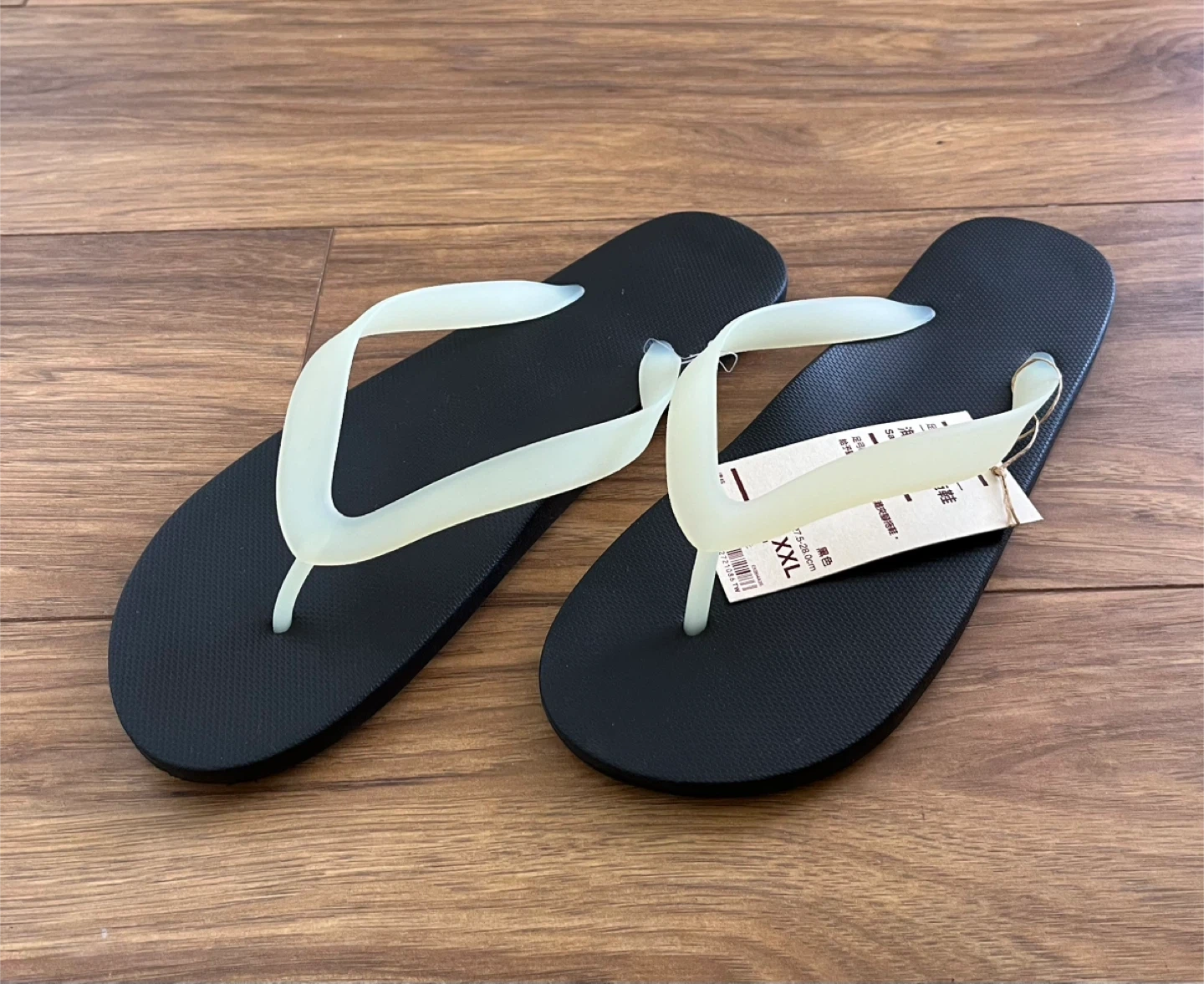 Selling a pair of Muji black flip flops in size XXL. These are brand new with tags still attached! Perfect for casual or wearing around the house.