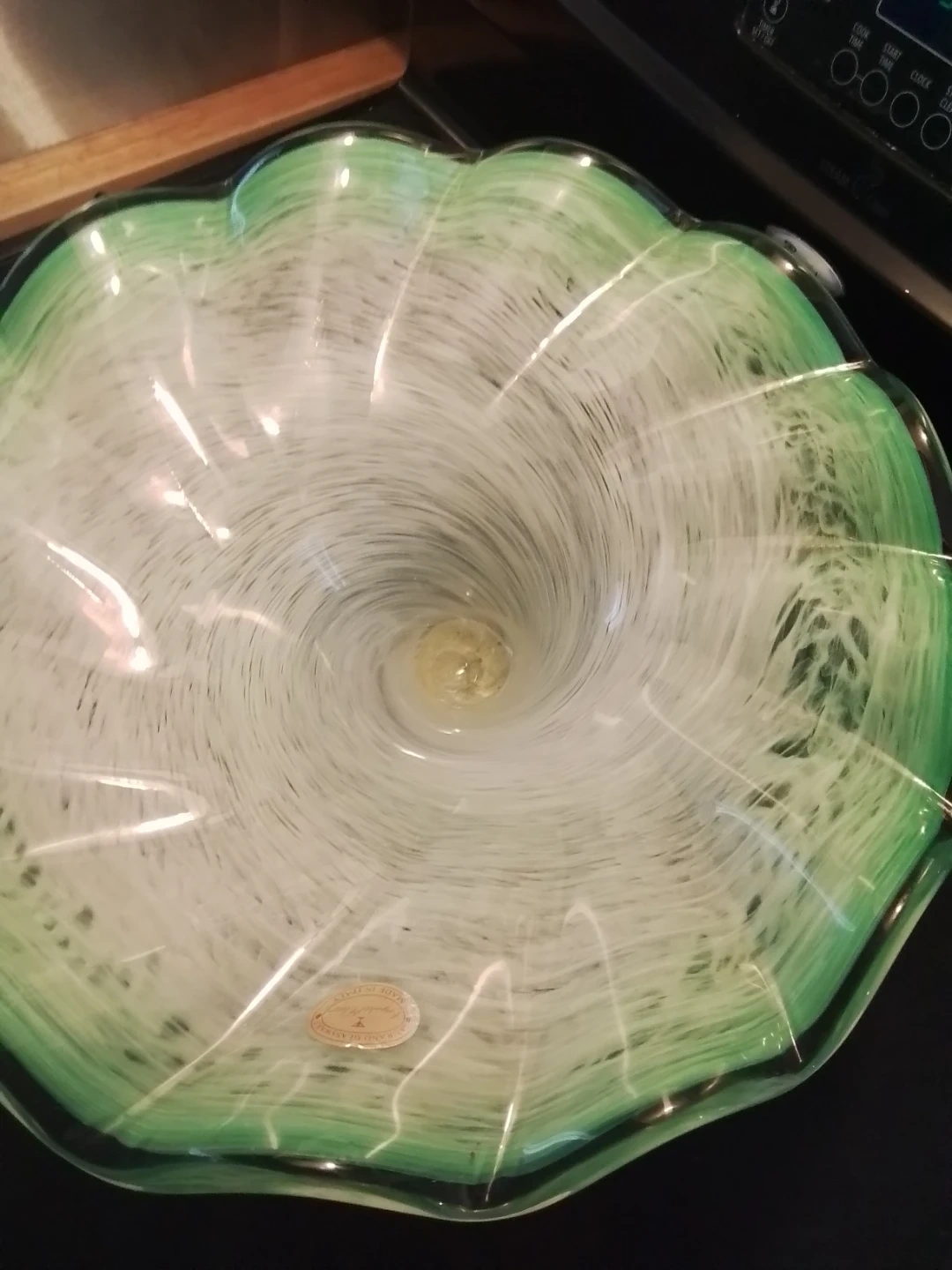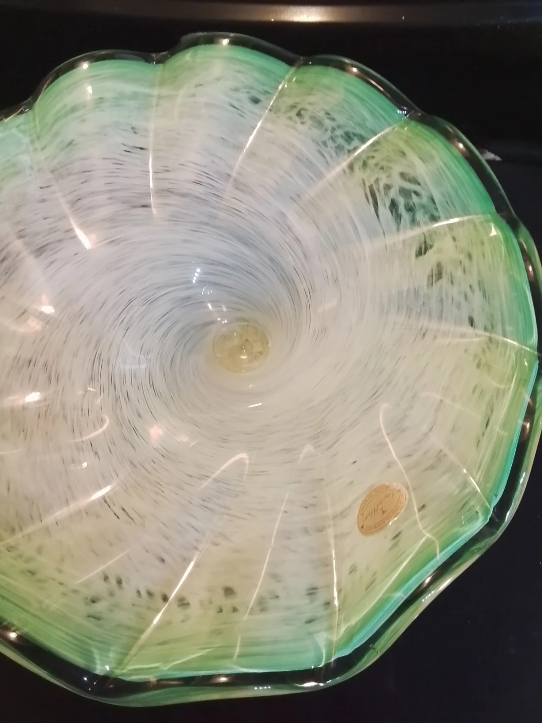 Beautiful Murano Glassware bowl in excellent condition! It features a lovely green and white swirl design. Perfect as a decorative piece for your home