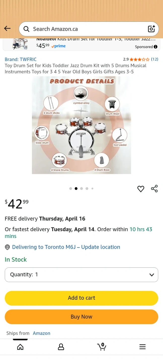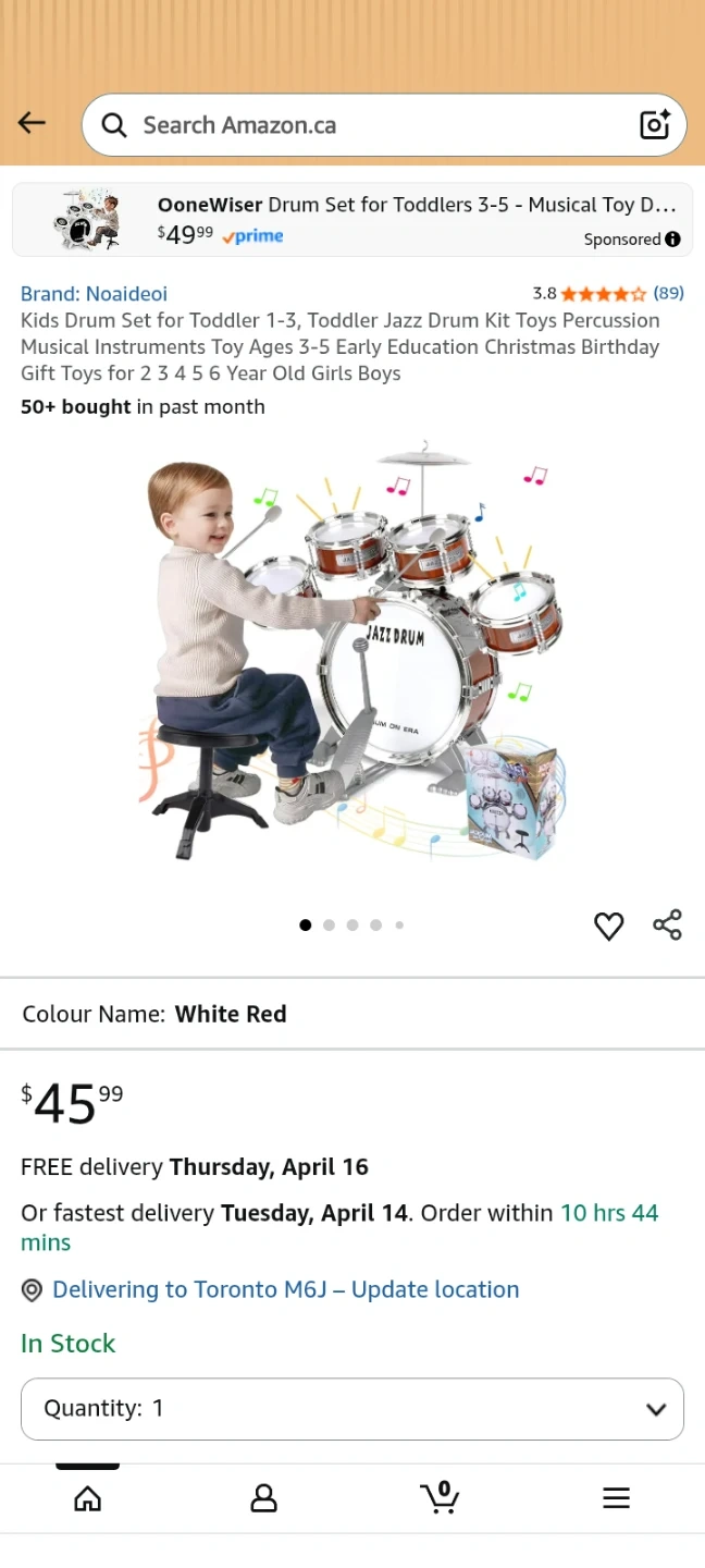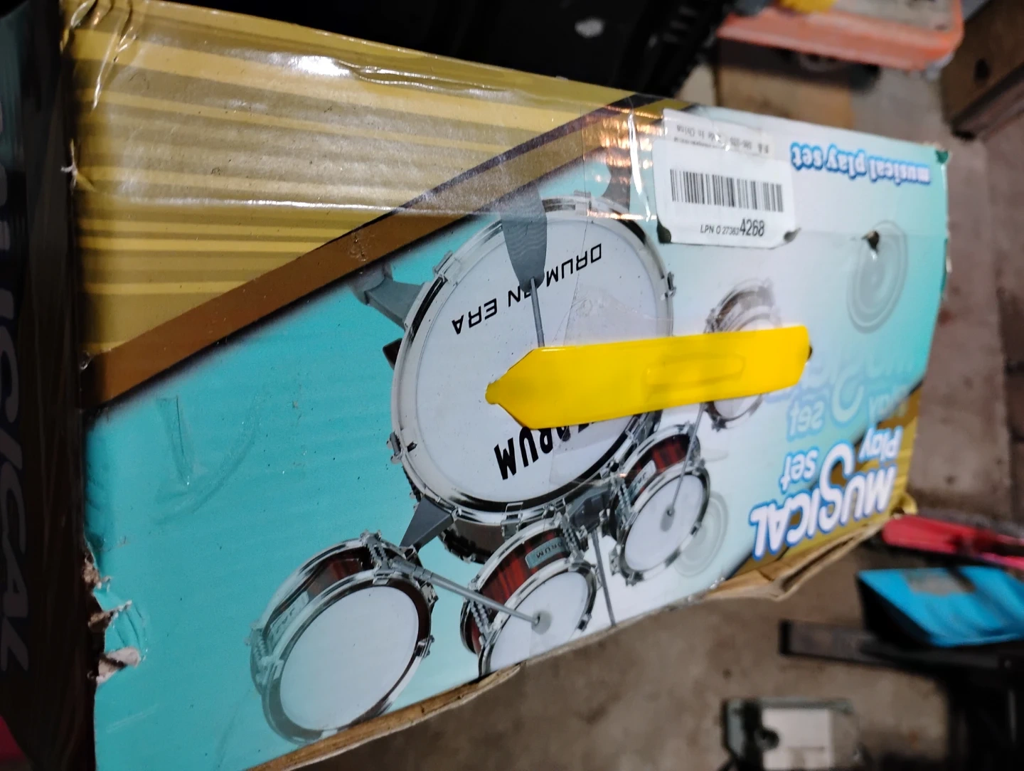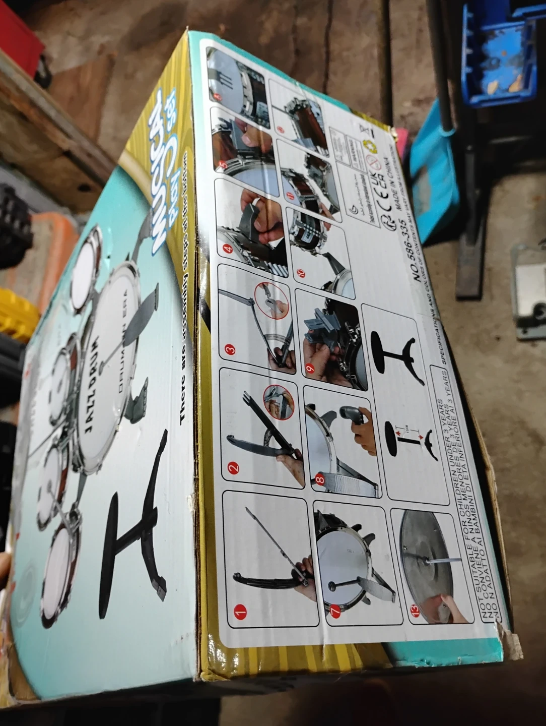 This is a Noaideoi musical play set for toddlers. It includes a drum kit and stool. Recommended for ages 3 and up.