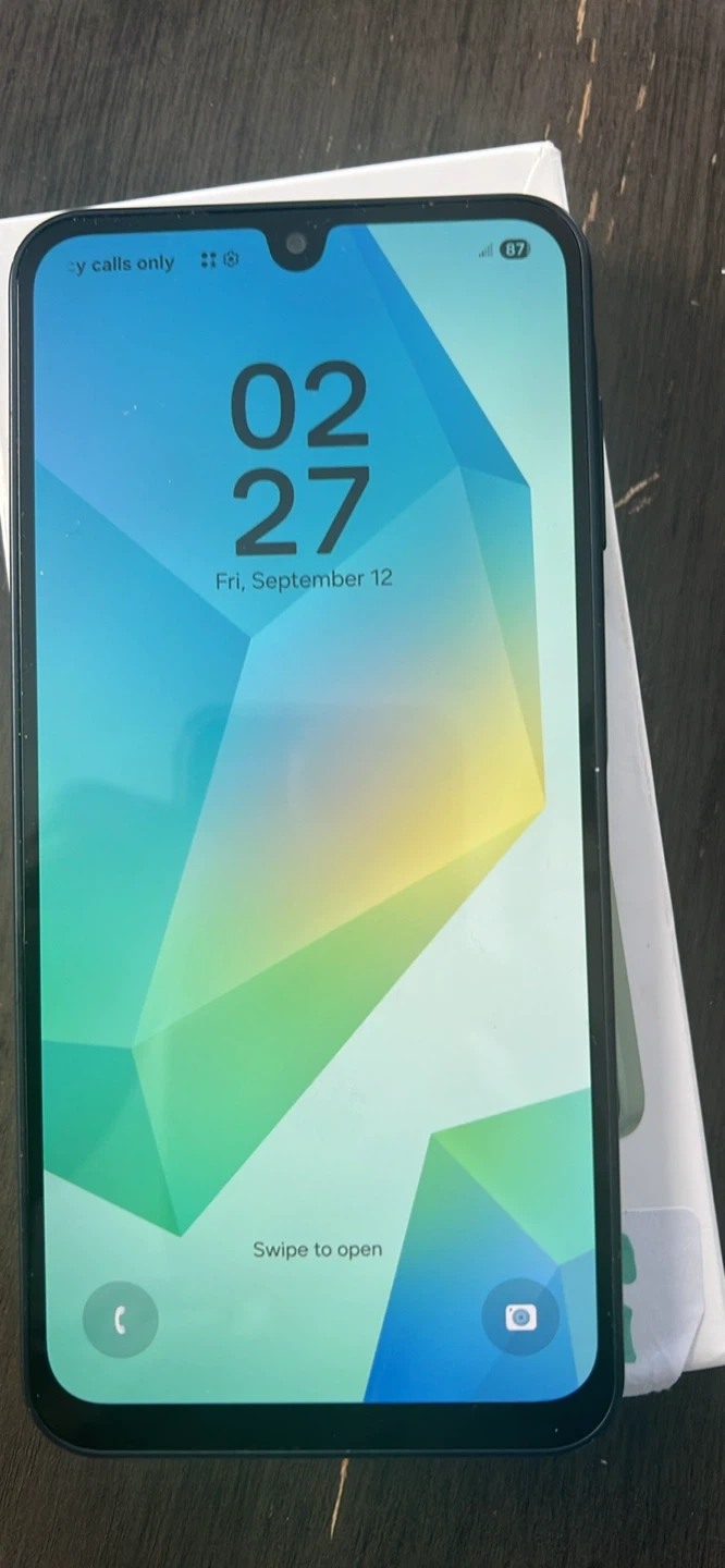 Samsung Galaxy A16 smartphone in a dark blue colour. It's a pre-owned device, and it comes with its original box. This phone is great for everyday use and captures decent photos.