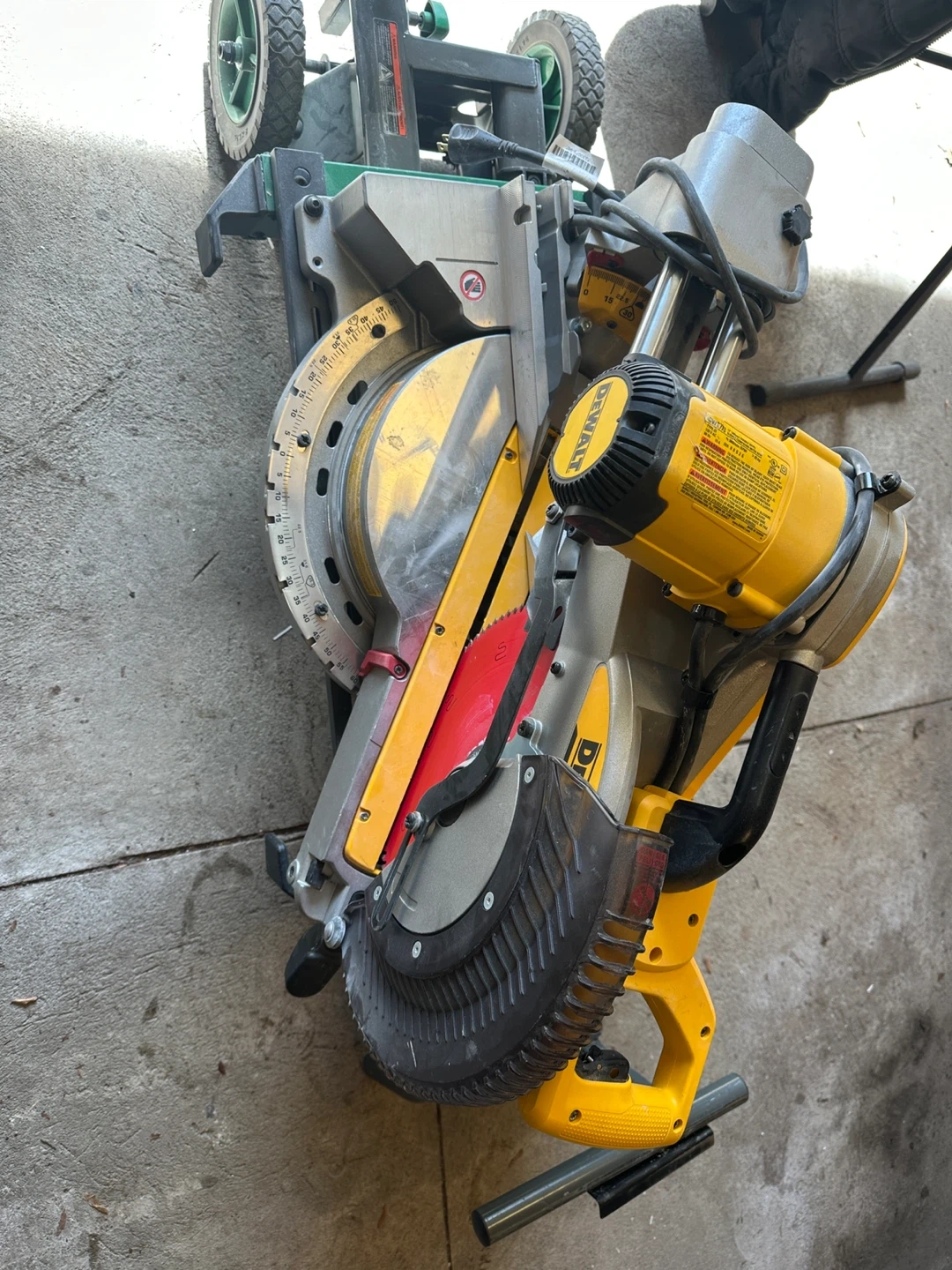 ((Stand not including,,,))This is a DEWALT 12 inch sliding compound miter saw. It's a double side .. This saw is great for making precise cuts on various materials.new is 800$ at Home Depot,, used only 2 months, i have other one so i dont need the second one anymore