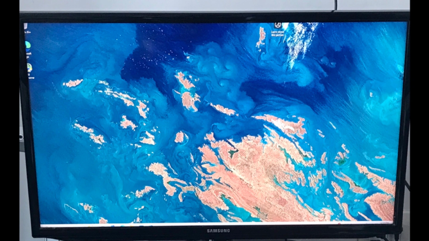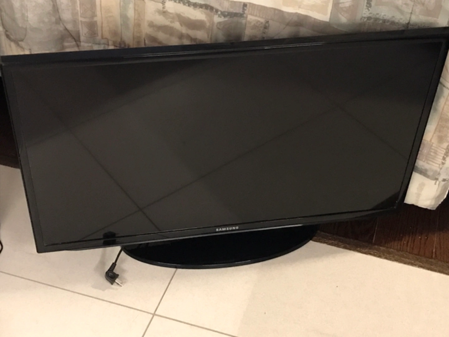 Samsung smart television. Black colour. Works well. It's a great TV for any room!