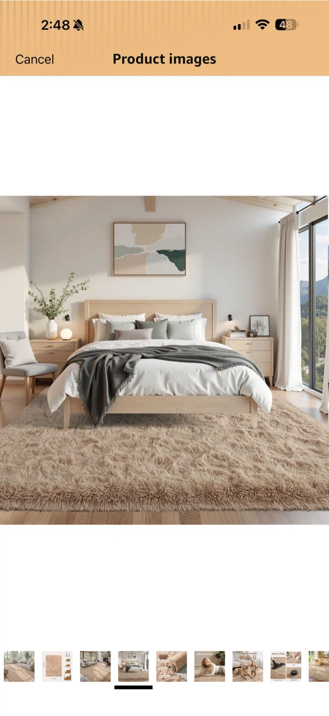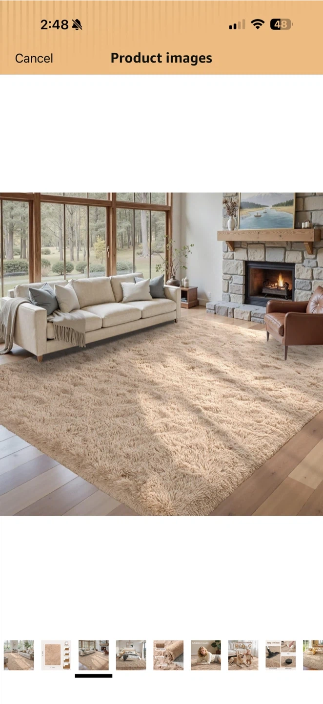 8’ x 10’ Beige Plush Shag Area Rug – High Pile – Open Box