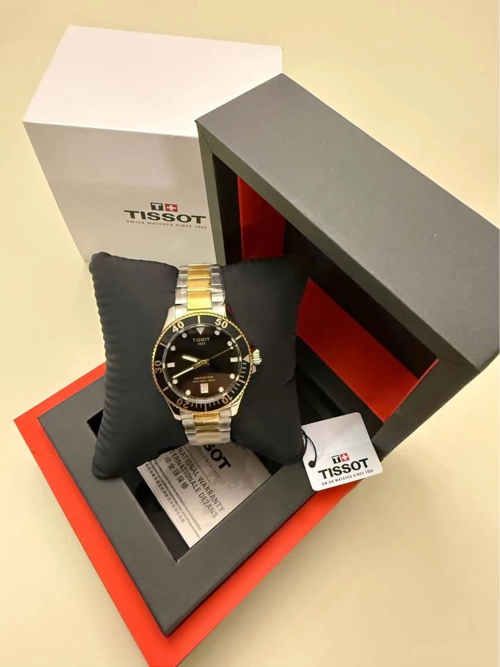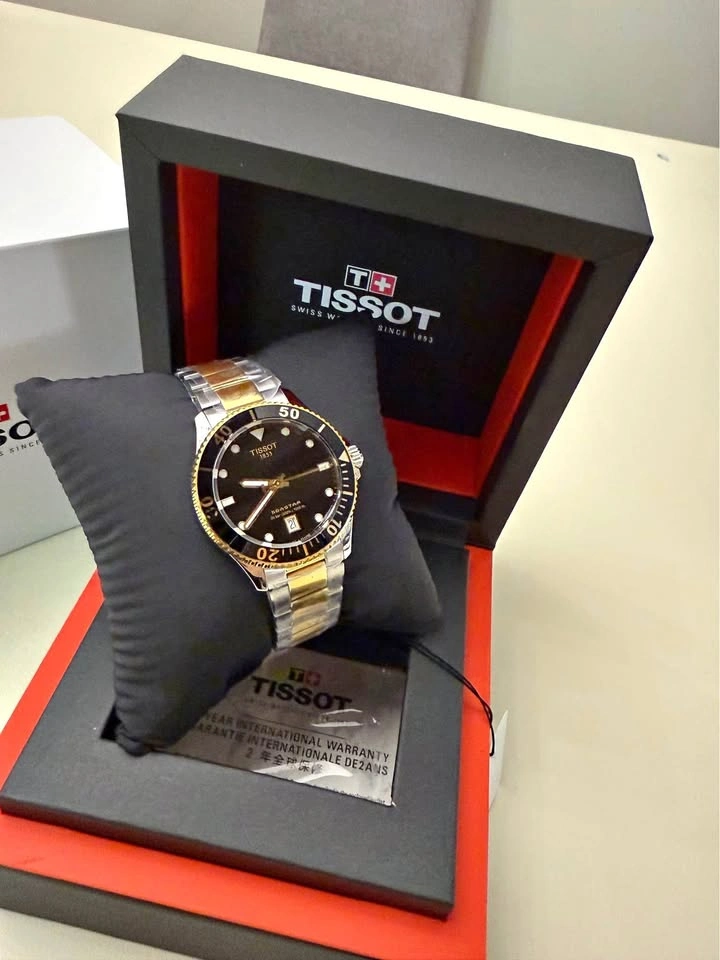 Brand new, never worn. 100% authentic Swiss-made dive-inspired timepiece with a bold black dial and striking black & gold accents—built for adventure while looking sharp for daily wear.