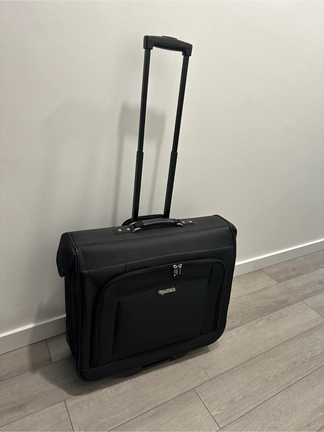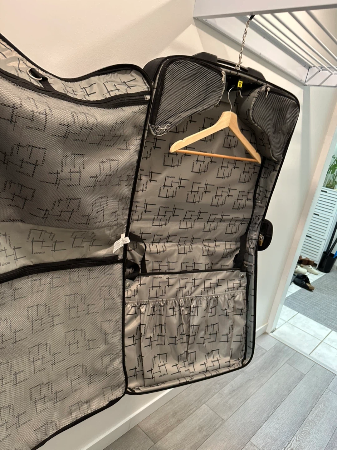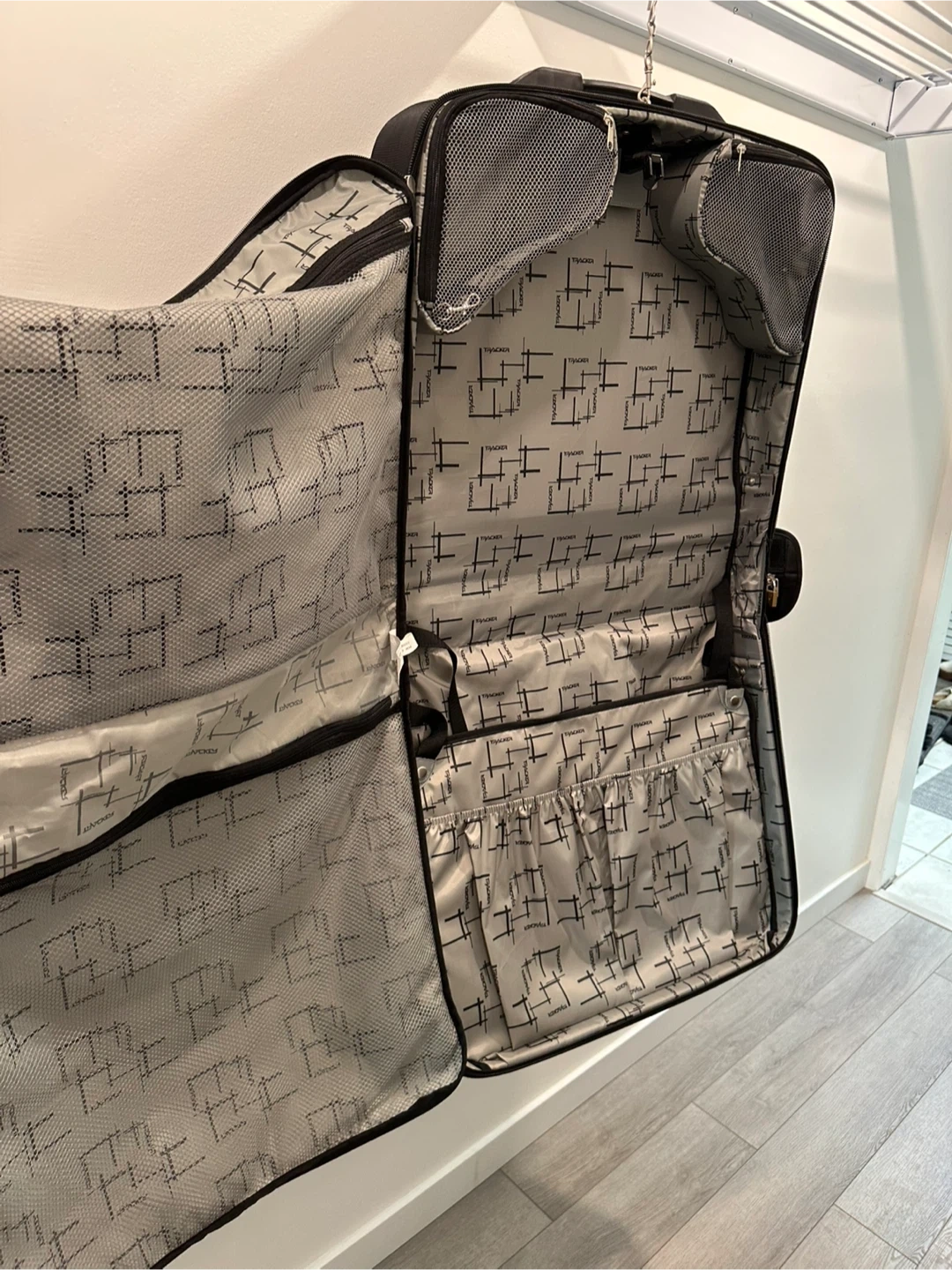 Selling a Tracker garment bag in black! It's in great condition and has lots of compartments to keep everything organized. Used onces. Perfect for travel!