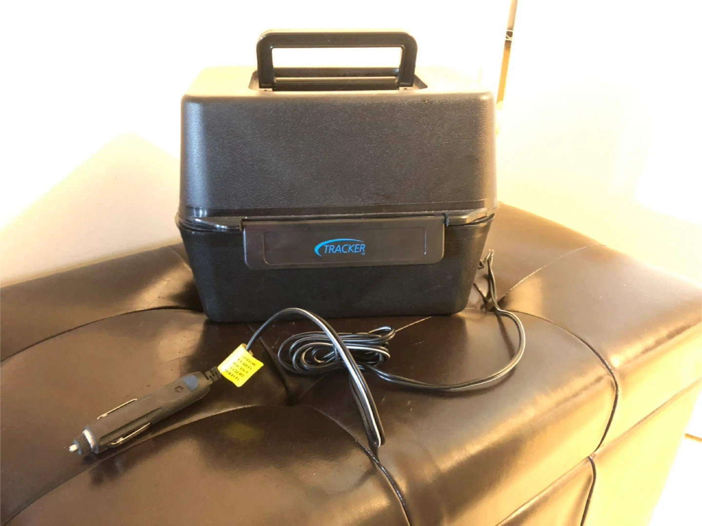 Keep your food warm/hot on the go with this Tracker portable warmer! It's in great condition. Plugs into the 12V socket of your vehicle.