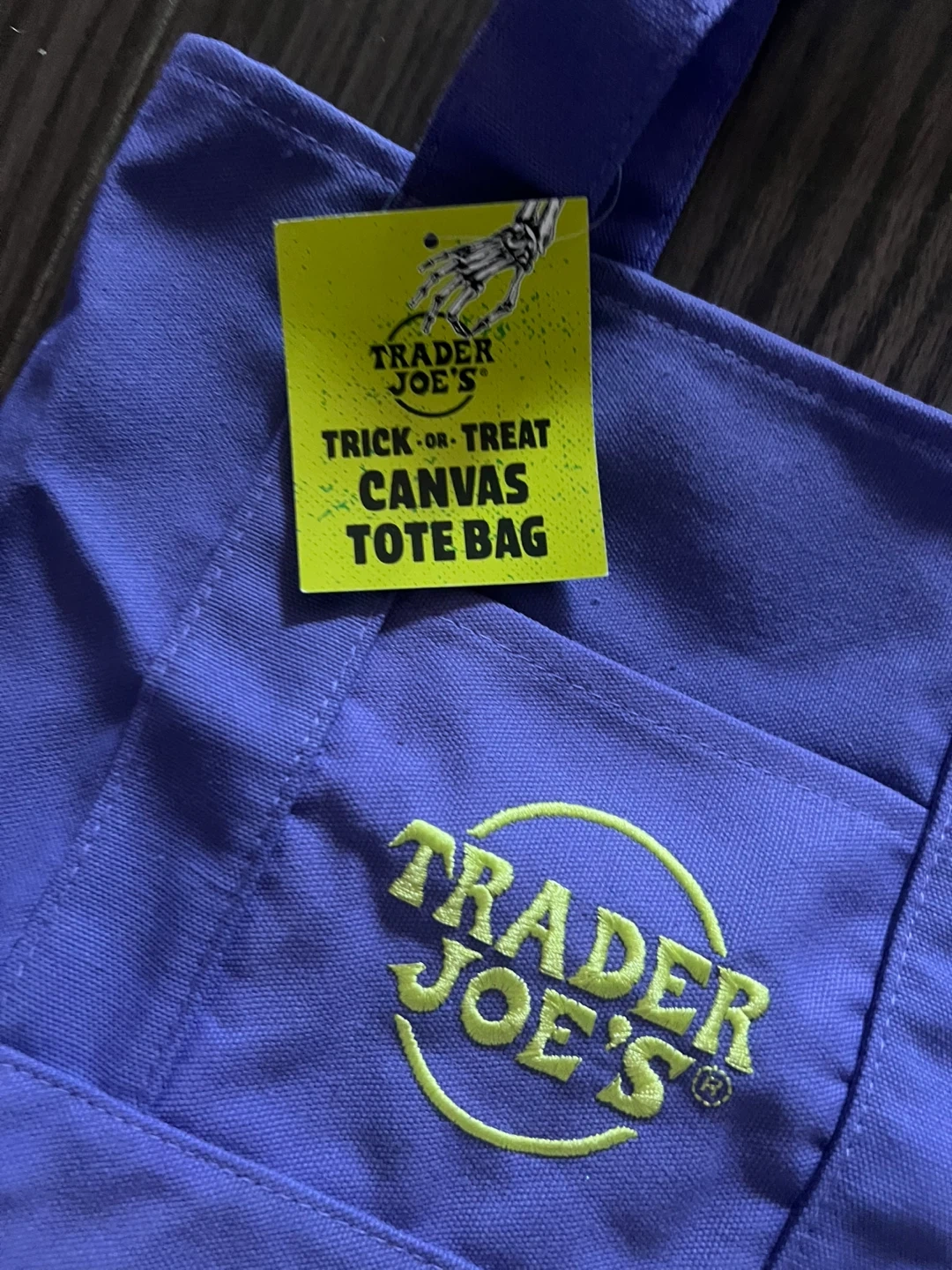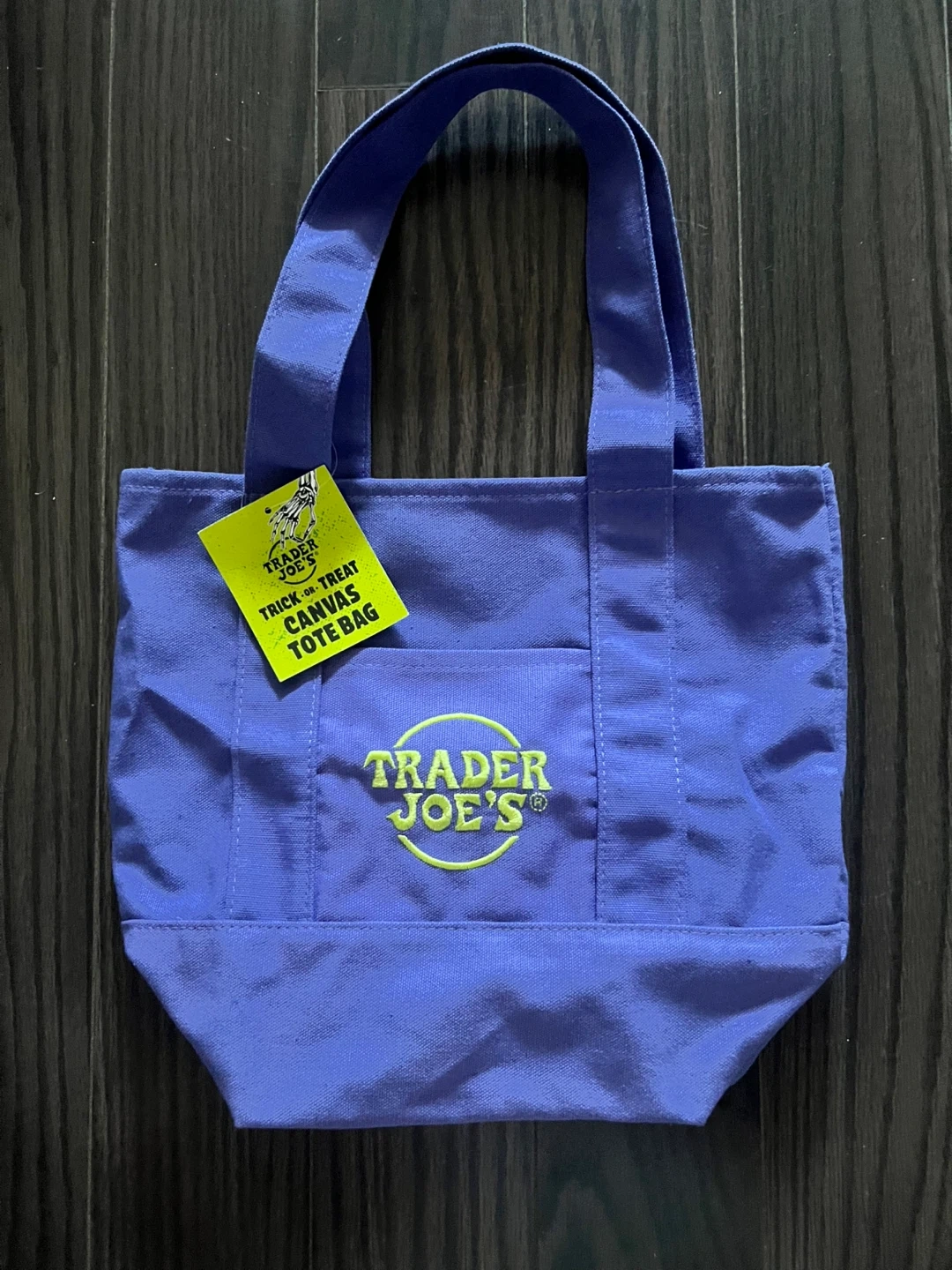 1000+I'm selling a Trader Joe's Trick-or-Treat canvas tote bag! It's a great size for carrying groceries or using as a reusable shopping bag. The bag is a lovely purple colour and features the Trader Joe's logo. Perfect for Halloween or everyday use!