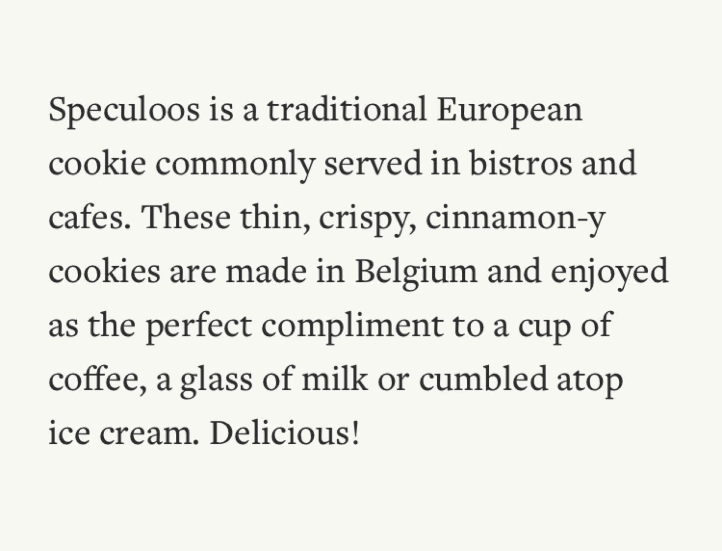 1000+*** This listing is approved by the Karrot Team. There is no best-before date on the packaging- it is recently purchased in the US *** A brand new pack of Speculoos Cookies. Made in Belgium. Crispy, Caramelized, Cinnamon Spice. Just delicious with a cup of coffee, tea, glass of chilled milk. Crumble them atop your ice cream bowl or dessert! 198g.