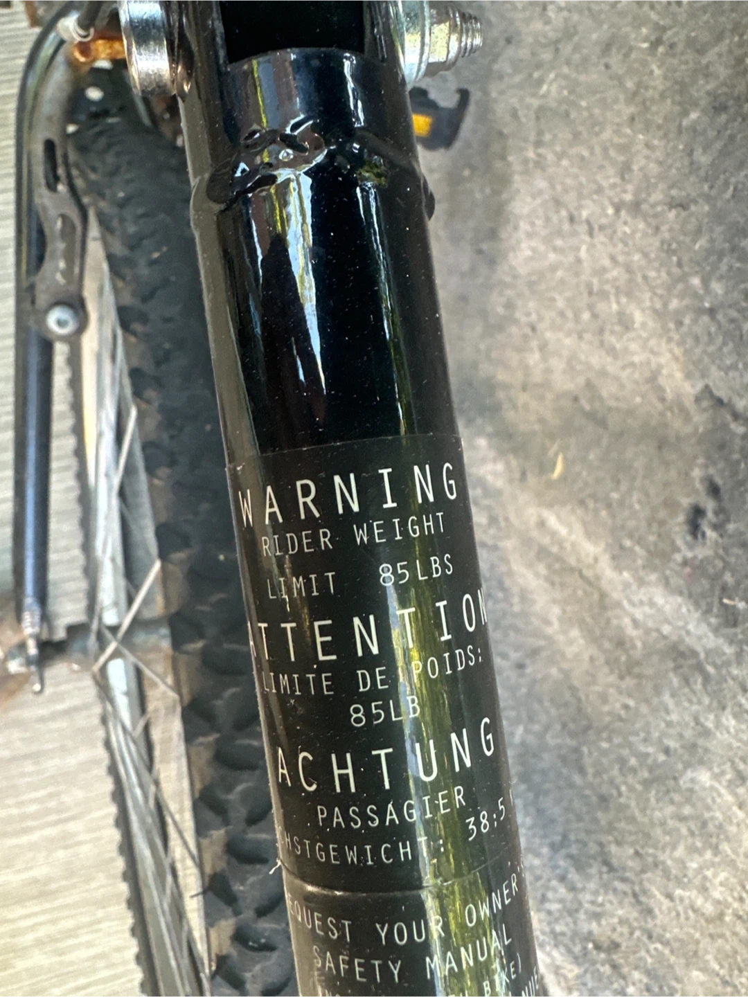 Trail-A-Bike bicycle attachment in good condition! It has a weight limit of 85lbs.