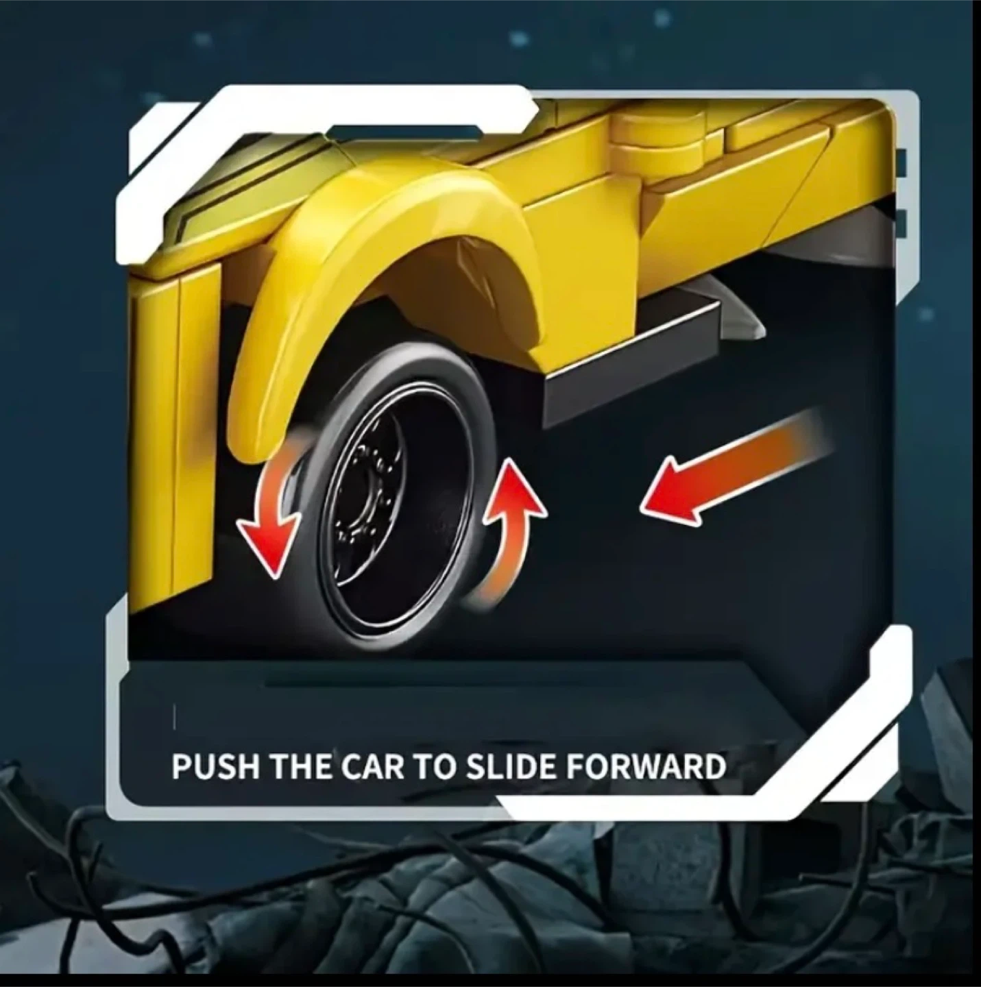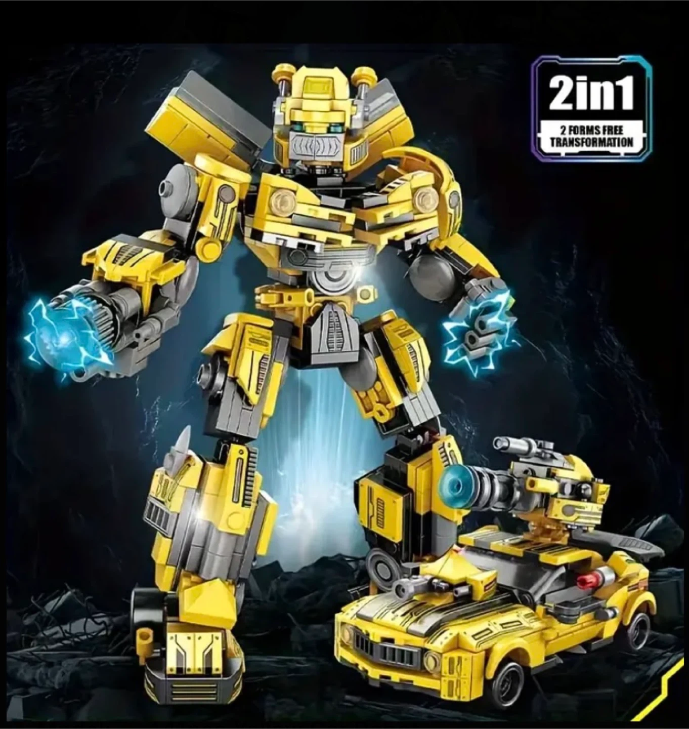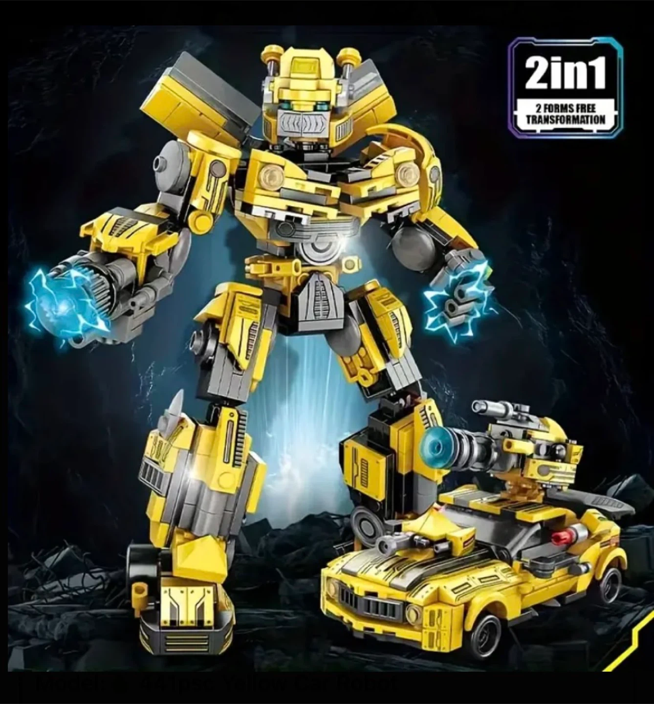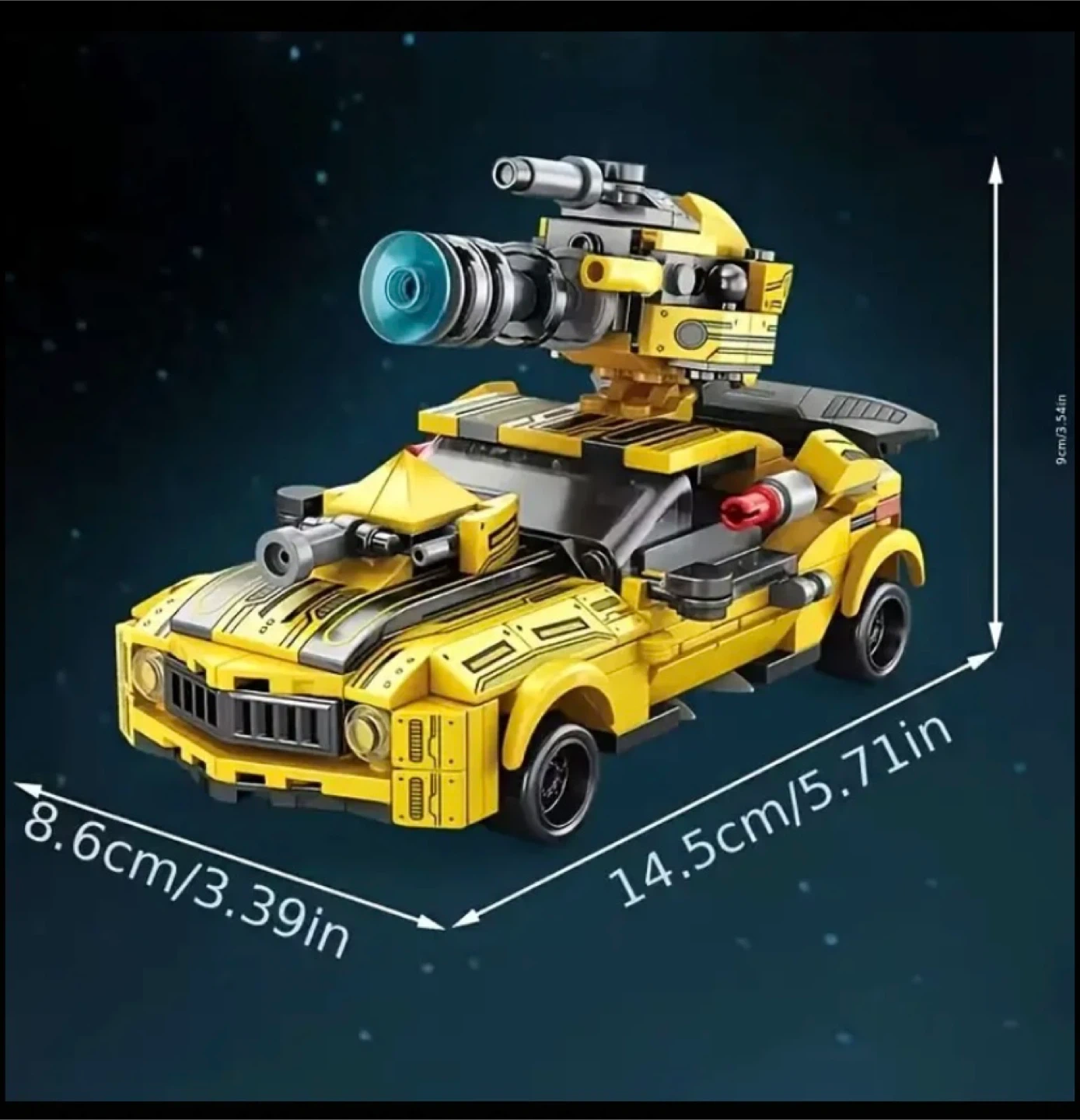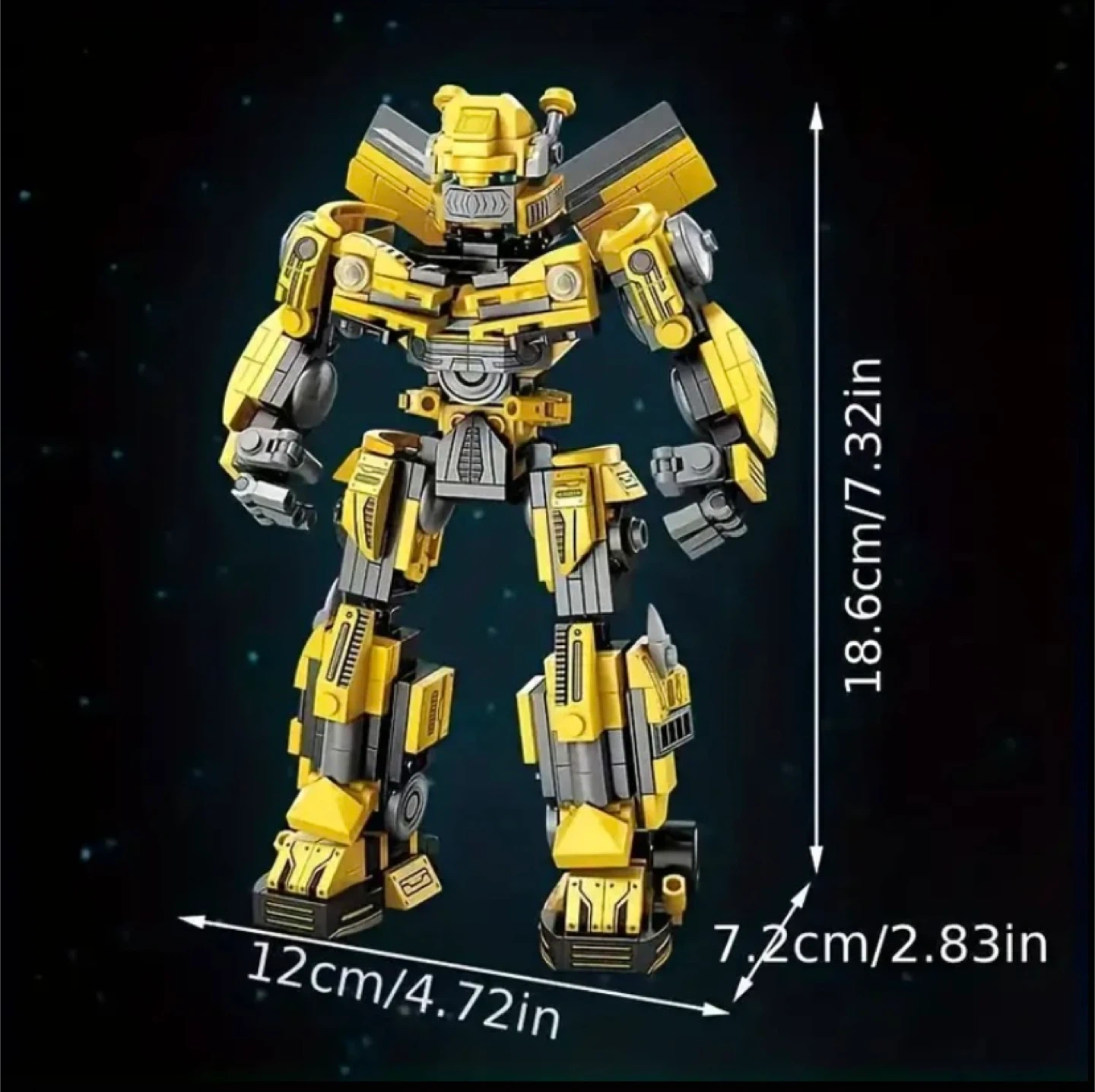 Check out this cool 2-in-1 transformer robot car! It's yellow and looks awesome. The whole body can move joints, and you can push the car to slide it forward. It measures about 18.6cm/7.32in tall and 12cm/4.72in wide for the robot, and the car is about 8.6cm/3.39in tall and 14.5cm/5.71in long