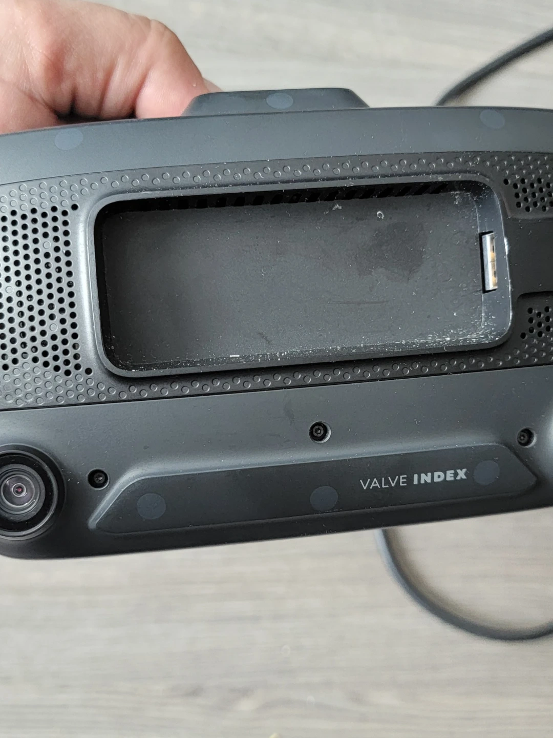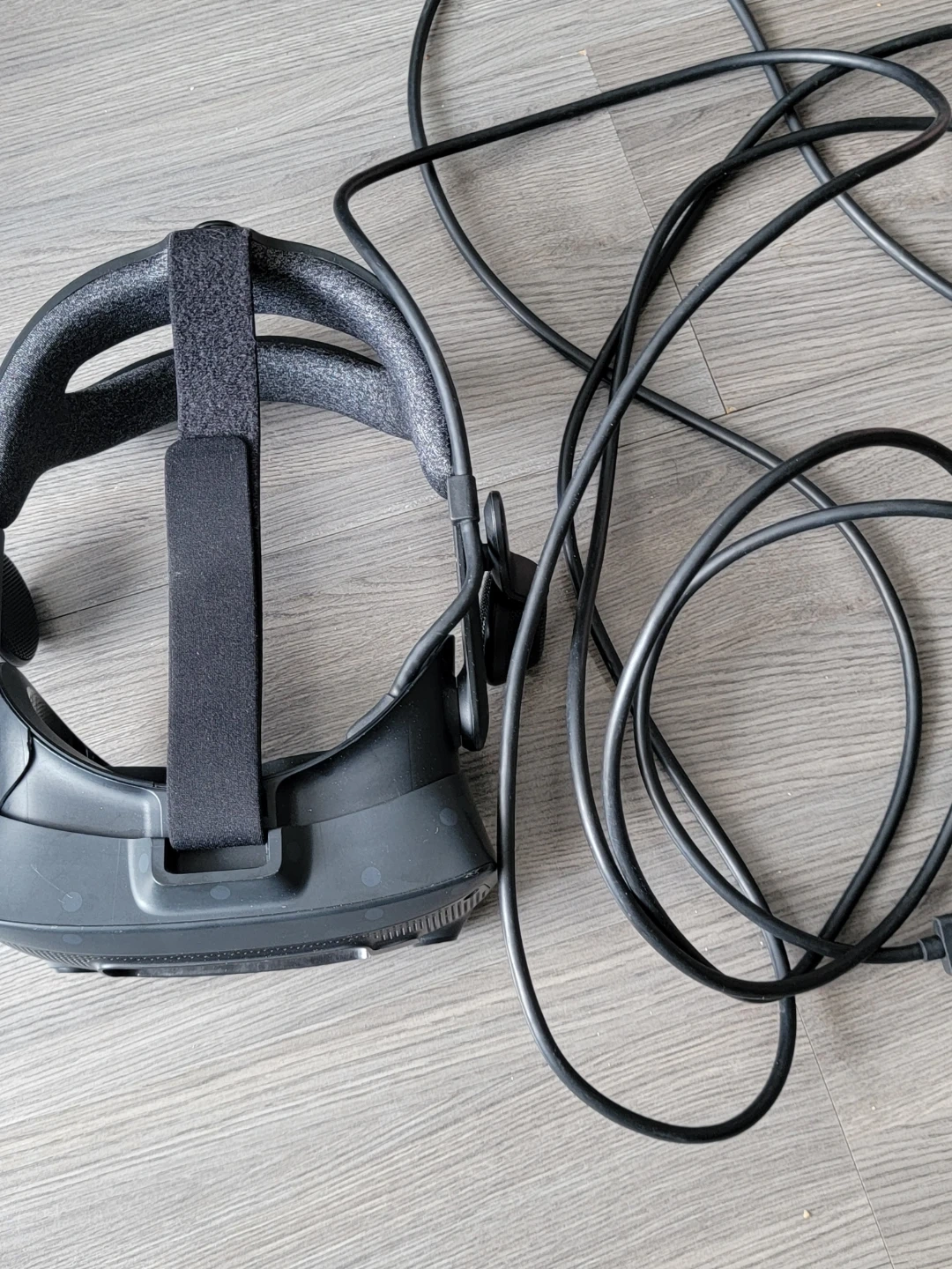 This is the Valve Index VR headset. It features integrated headphones for immersive audio. The headset has adjustable straps for a comfortable fit. It's great for virtual reality gaming and experiences!