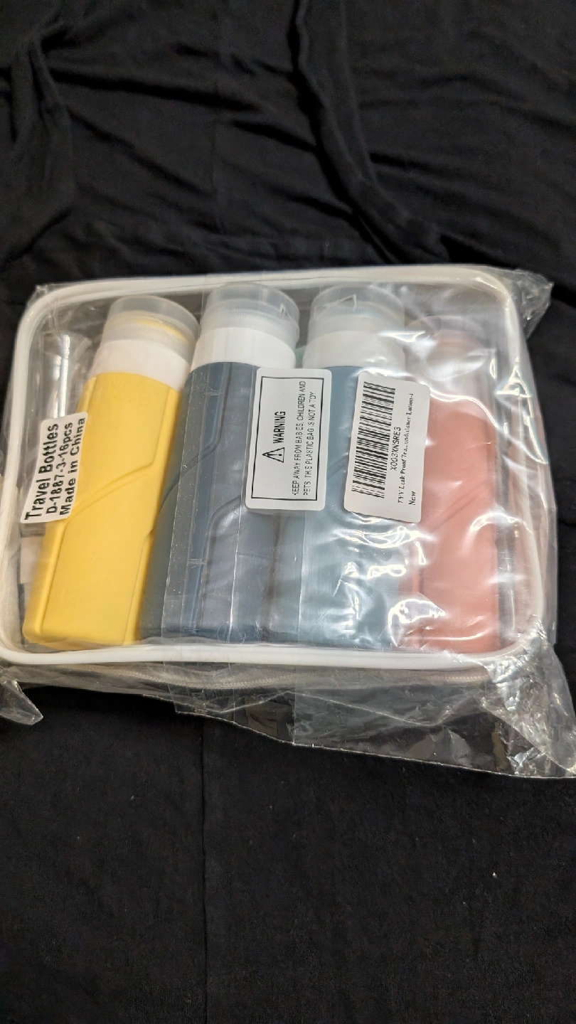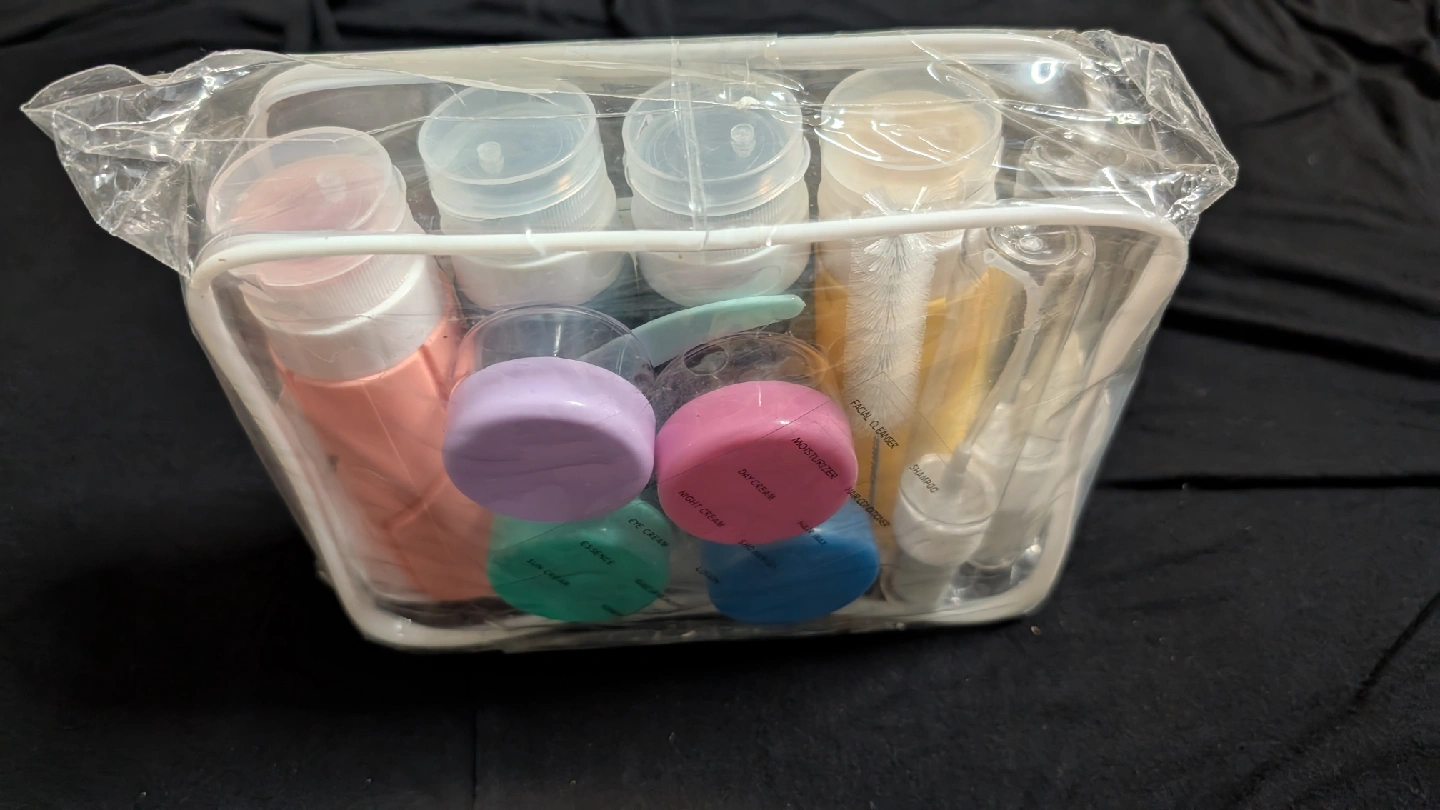Selling a brand new 10-piece travel bottle set! It includes a variety of bottles and containers for all your travel needs. Perfect for carrying shampoo, lotion, and other toiletries in a compact and organized way