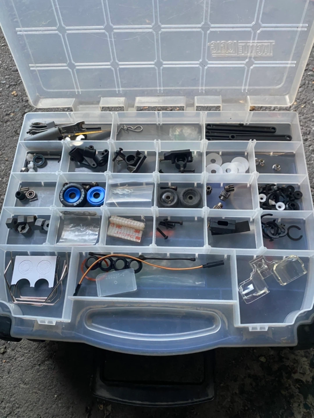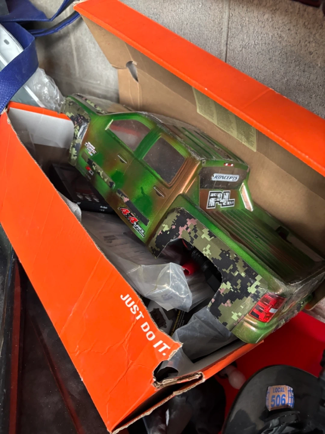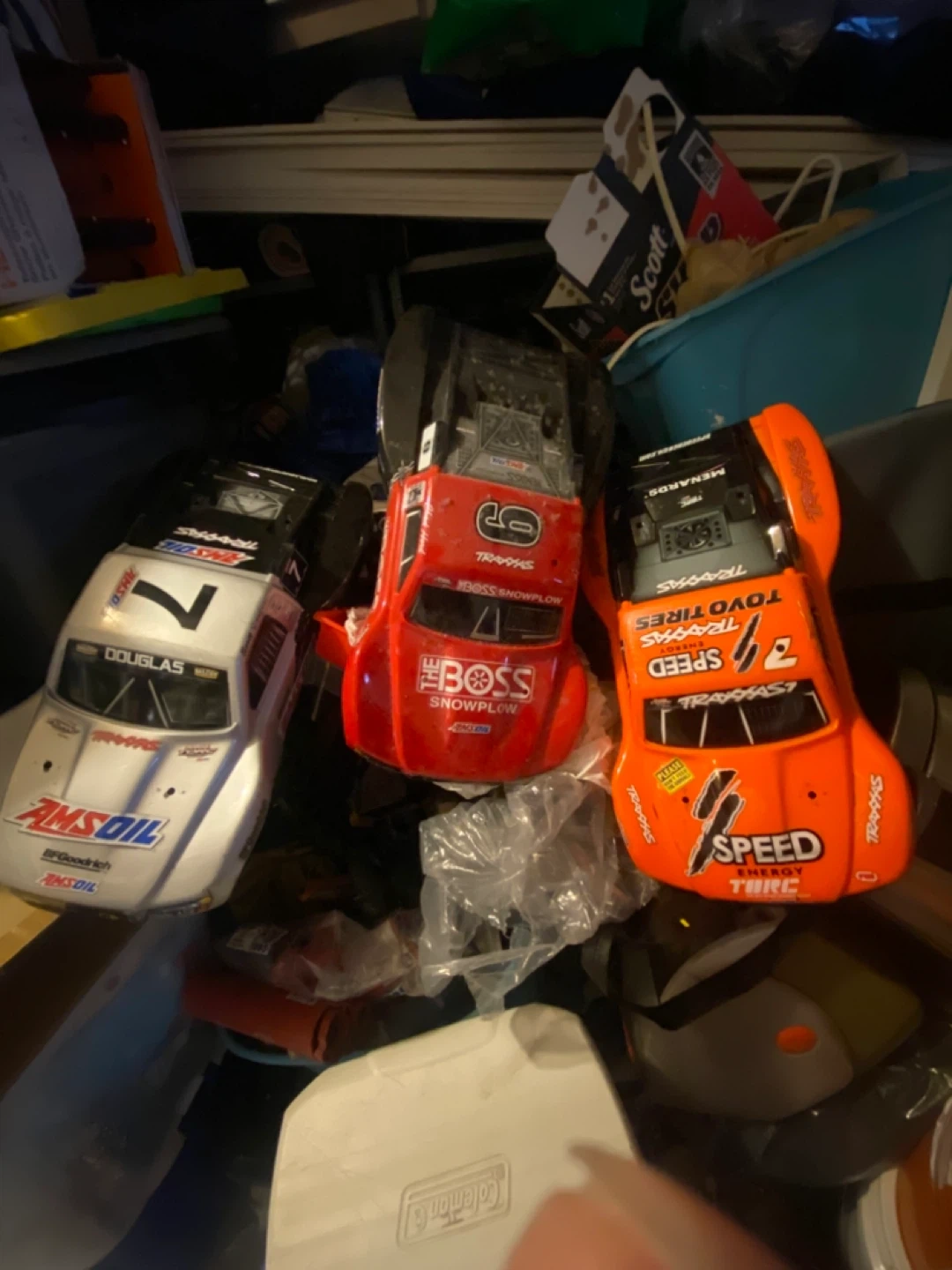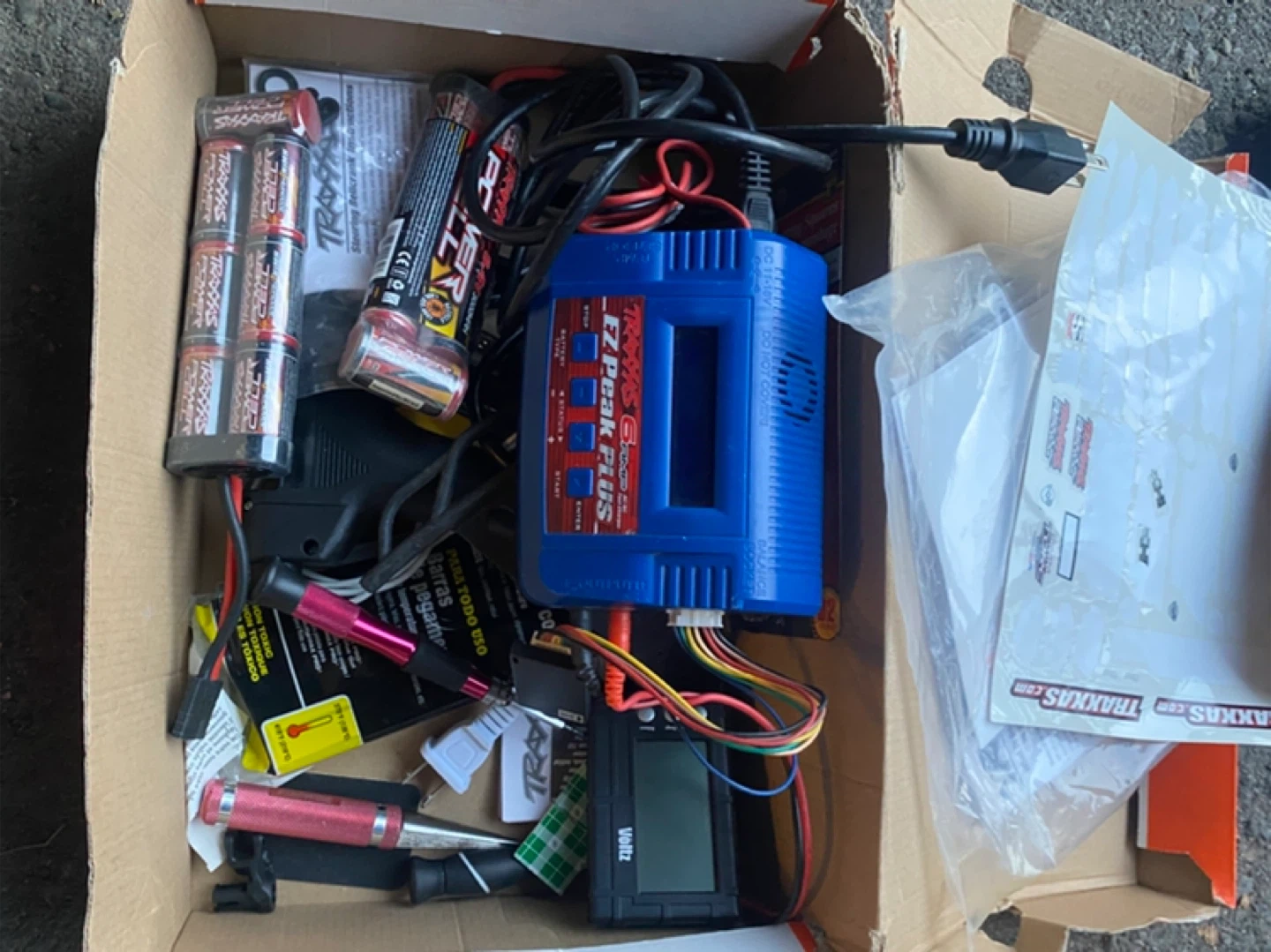 Selling a collection of RC truck Traxxas slash 4x4 and Stampede 2WD parts and accessories. Includes a few truck body and various components in storage containers. Great for RC enthusiasts! Lots of parts and tool box, controllers and batteries