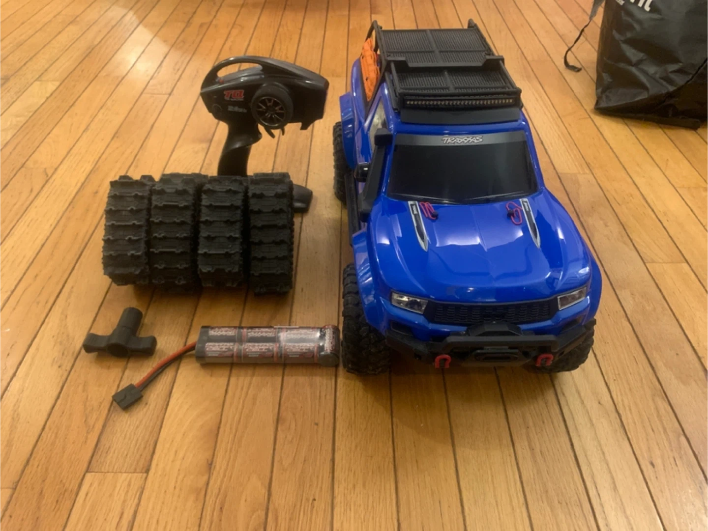 15Selling a Traxxas RC truck that's in great shape! It comes with a controller, battery pack, and an extra set of tires. However it doesn’t have the charger. It’s still ready for some off-road fun!