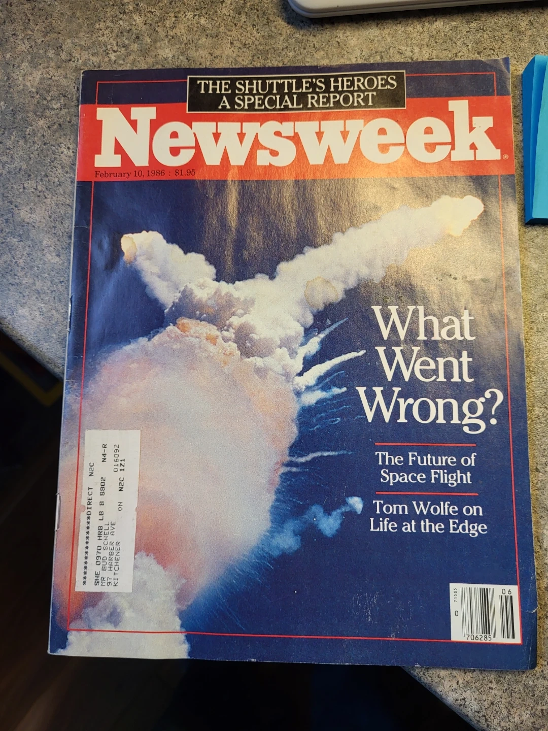 This is a Newsweek magazine from February 10, 1986. It features a special report on 'The Shuttle's Heroes' and an article by Tom Wolfe. It also covers 'What Went Wrong?' and 'The Future of Space Flight'.