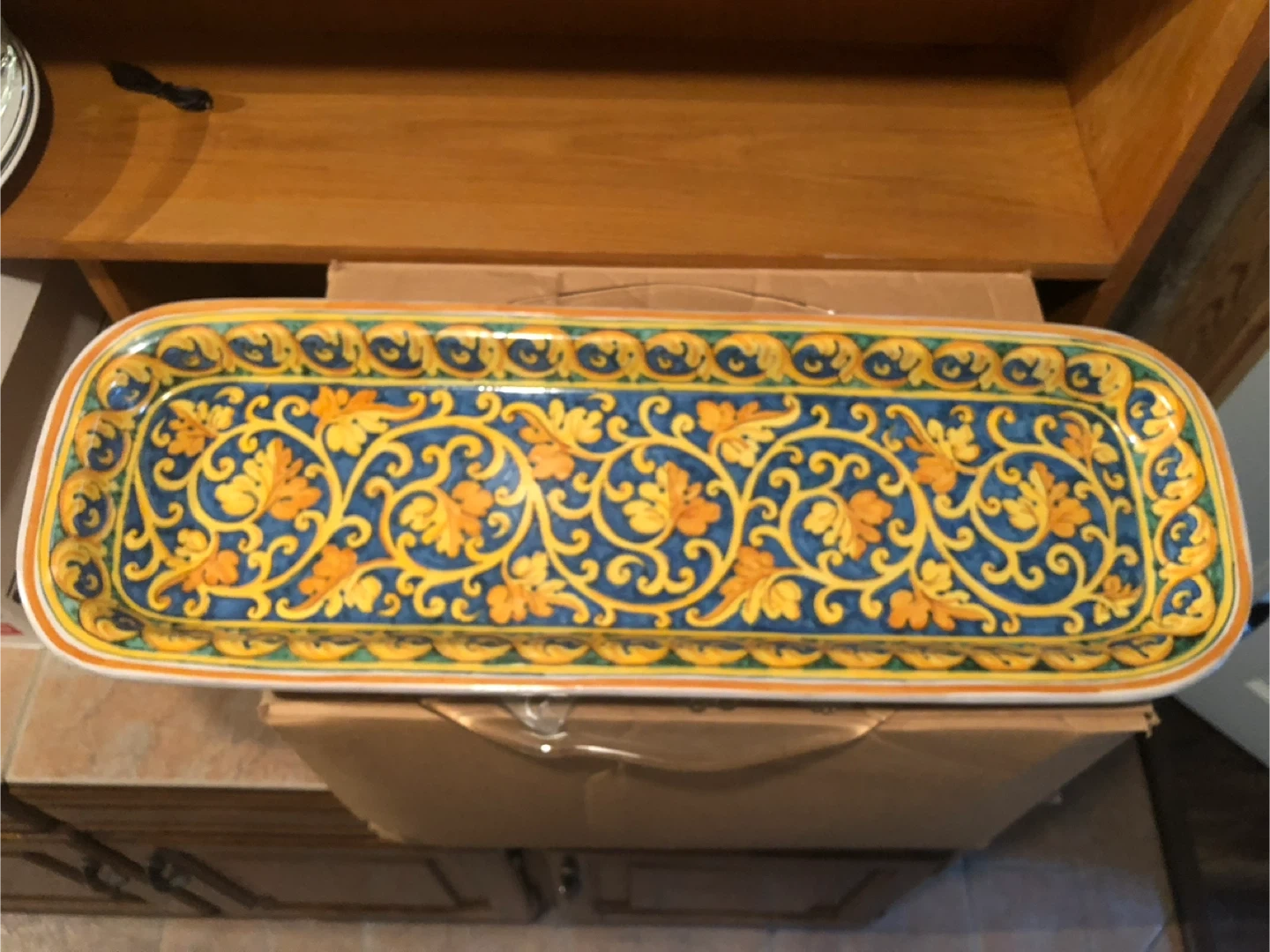 5Selling a beautiful Tre Erre Palermo decorative tray. It features a vibrant design with blue, yellow, and orange colours. Perfect for adding a touch of Italian artistry to your home decor! Etched in back for authenticity!!